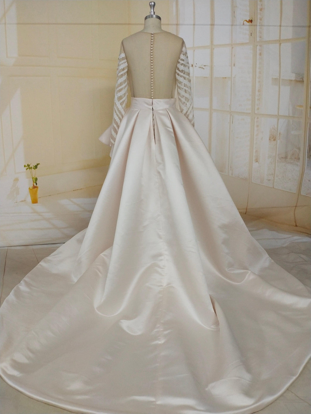 C2021-Jumoke - Elegant long sleeve illusion neck line wedding gown