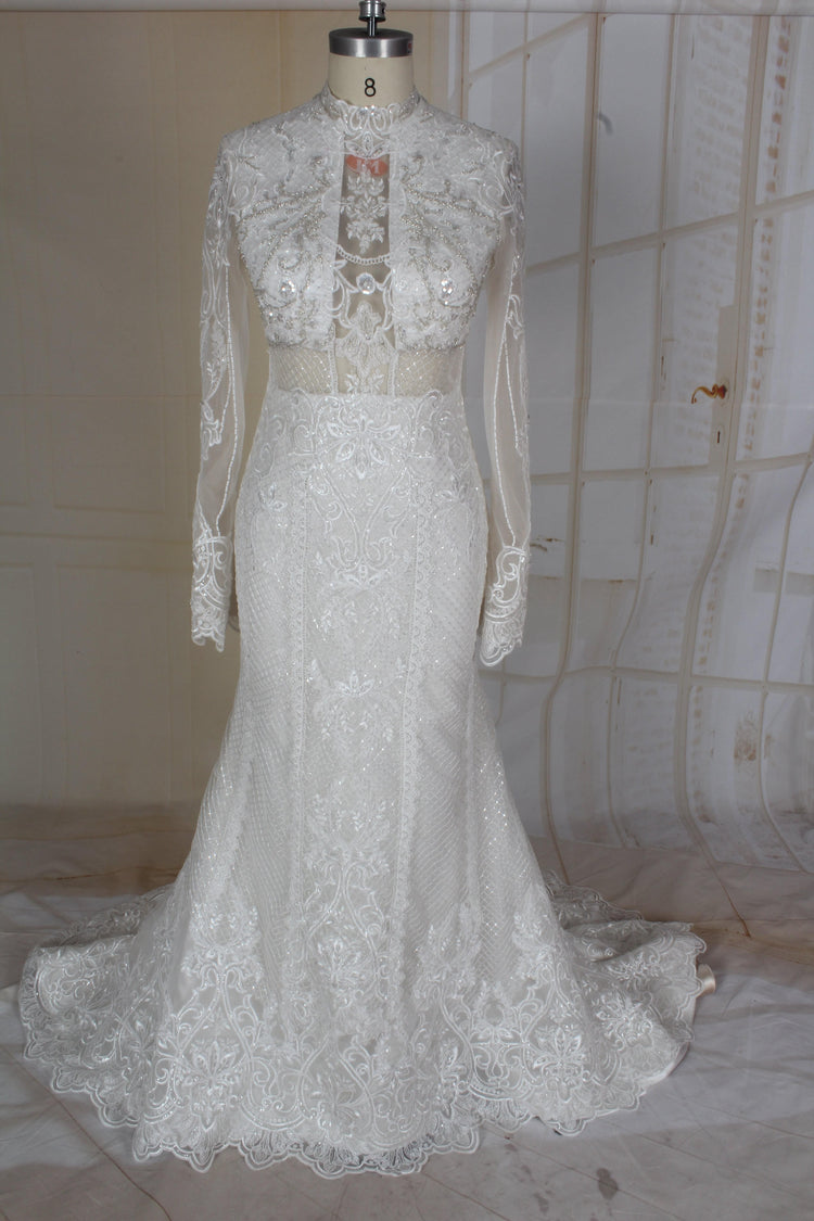 This long sleeve wedding gown was a replica we made for a long distance bride. It is now part of our collection of wedding gown options. it can be remade in any size with any changes. We can use any pictures you have to create your custom design.