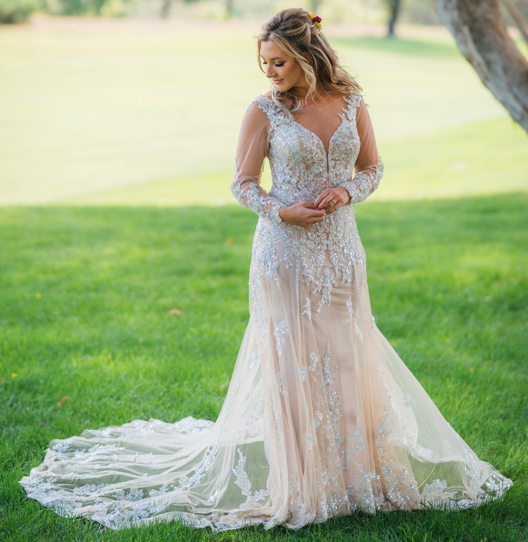 Be the stunning bride of your dreams in #style C2024-AB527 #wedding gown! This sheer long sleeve #beauty is adorned with delicate beading, adding a touch of elegance to your #special #weddingday. Make a lasting impression with this one-of-a-kind #dress.