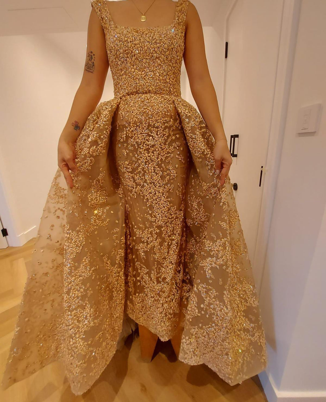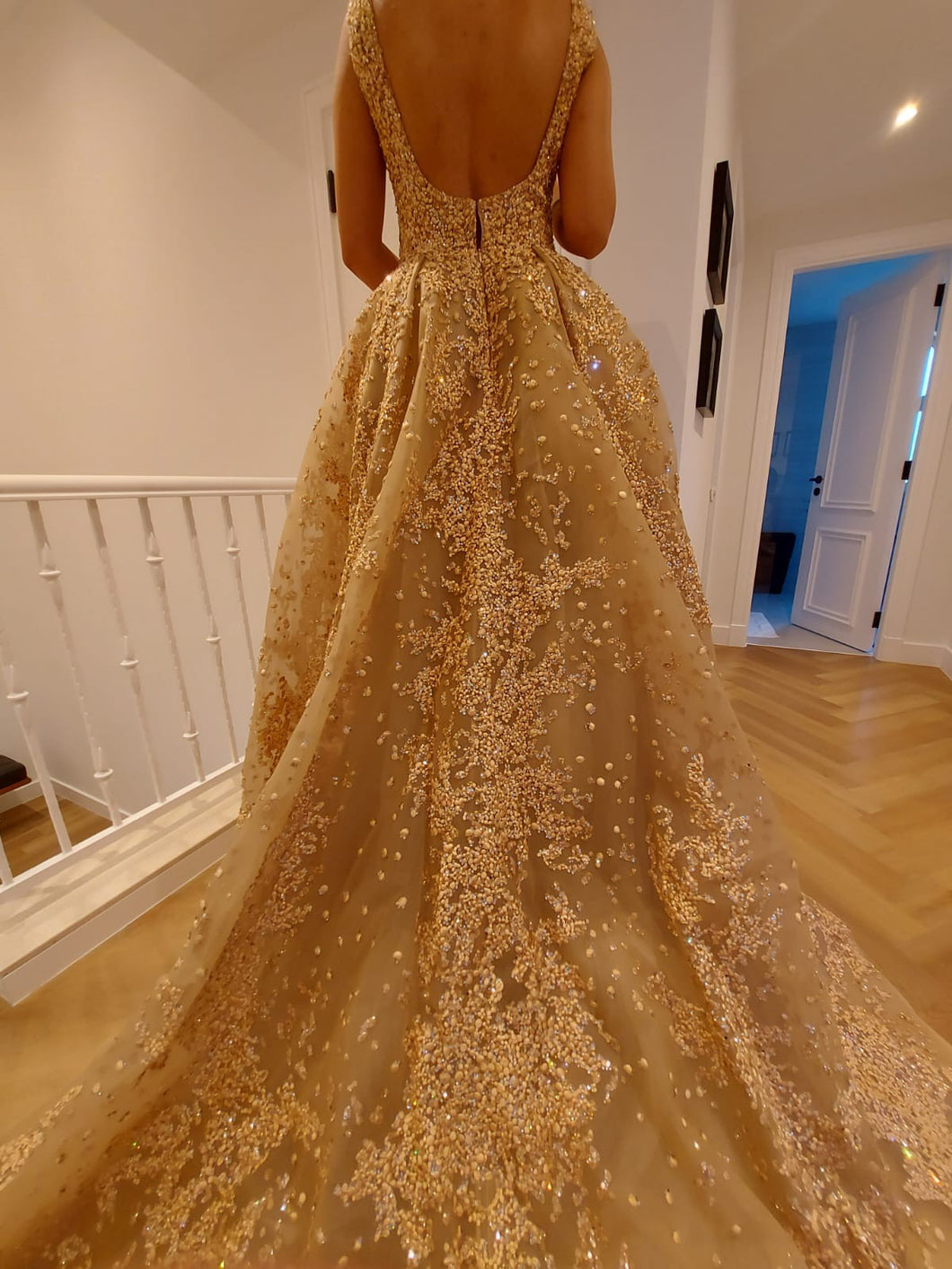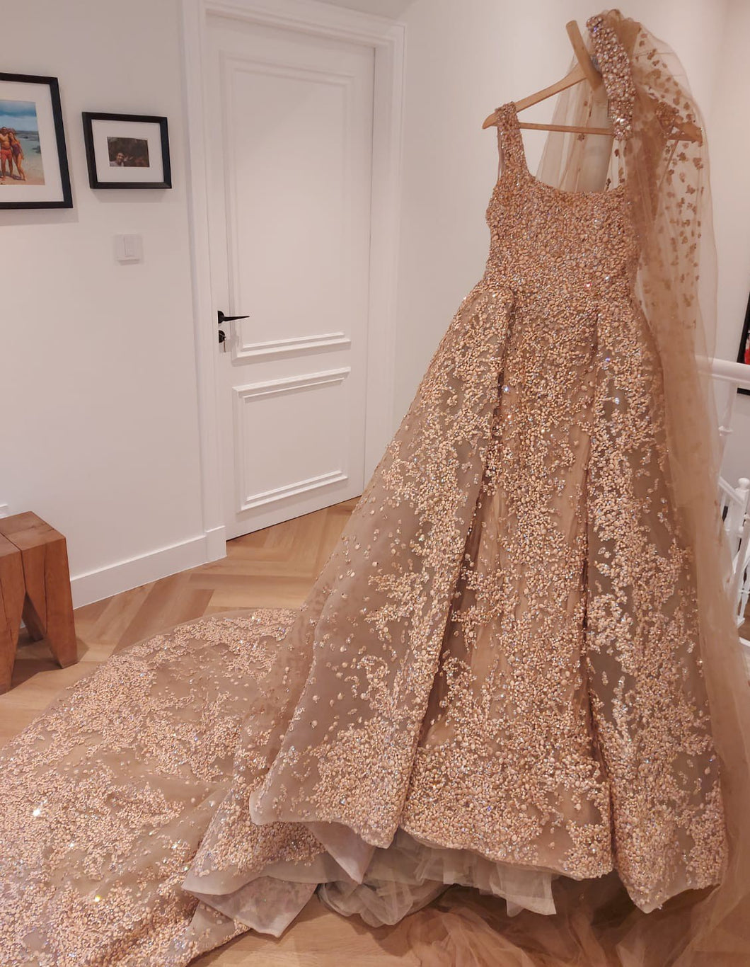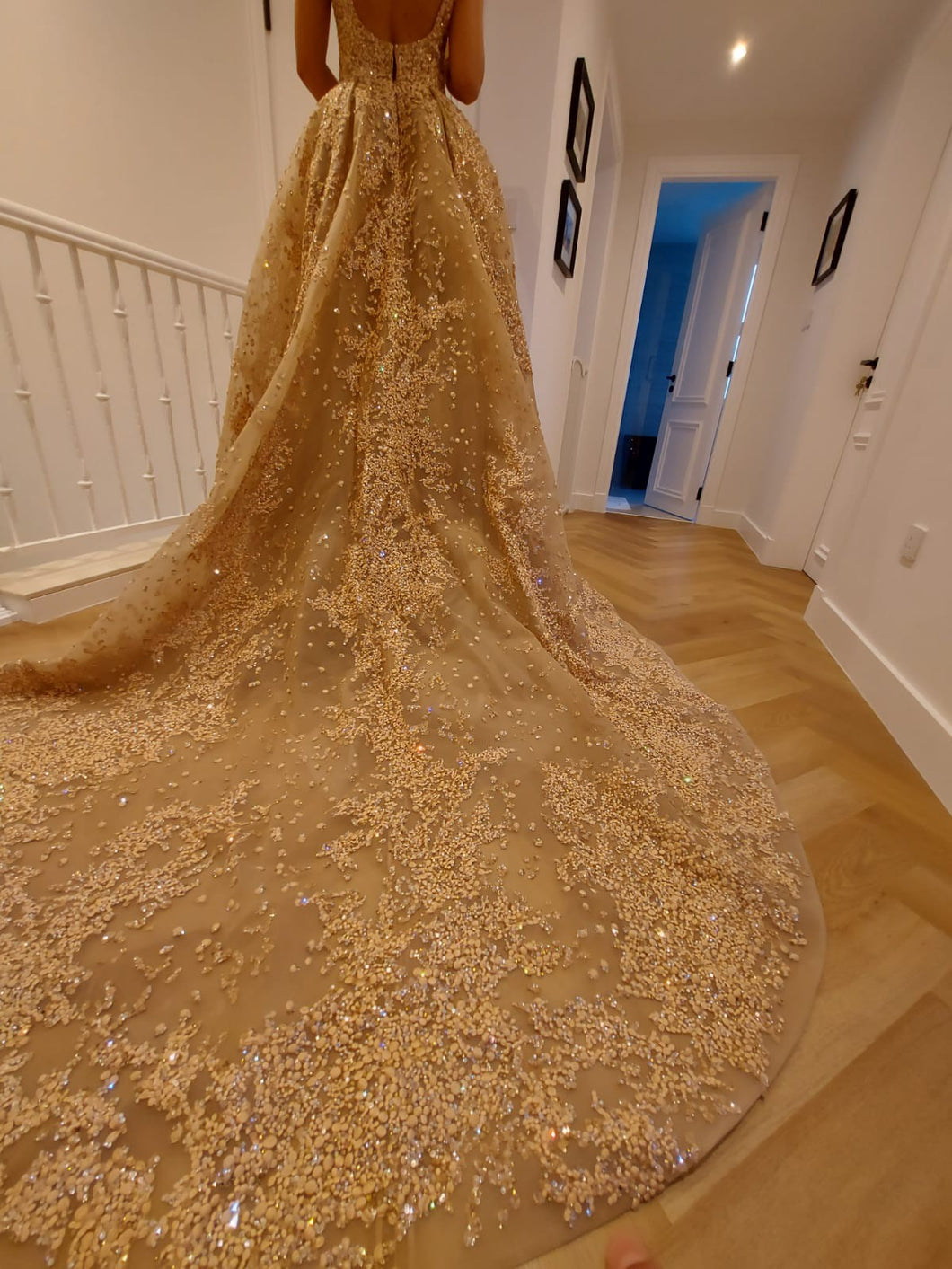 Be the epitome of #elegance in #style C2024-ES44 #wedding gown. Inspired by Elie Saab, this backless #beauty features intricate beaded #lace and a detachable overskirt for a luxurious touch. #Perfect for the #modern #bride seeking a touch of luxury on her #special #weddingday.