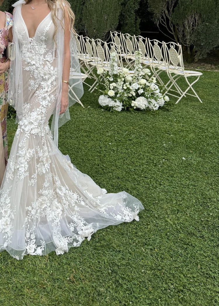 Feel like a goddess on your special day with our C2024-GL104 wedding gown! This sleeveless dress features stunning embroidery and delicate chiffon shoulder scarfs, inspired by the elegant G-104 design from Galia Lahav. Complete with a flattering silhouette, you'll effortlessly exude grace and beauty as you walk down the aisle.