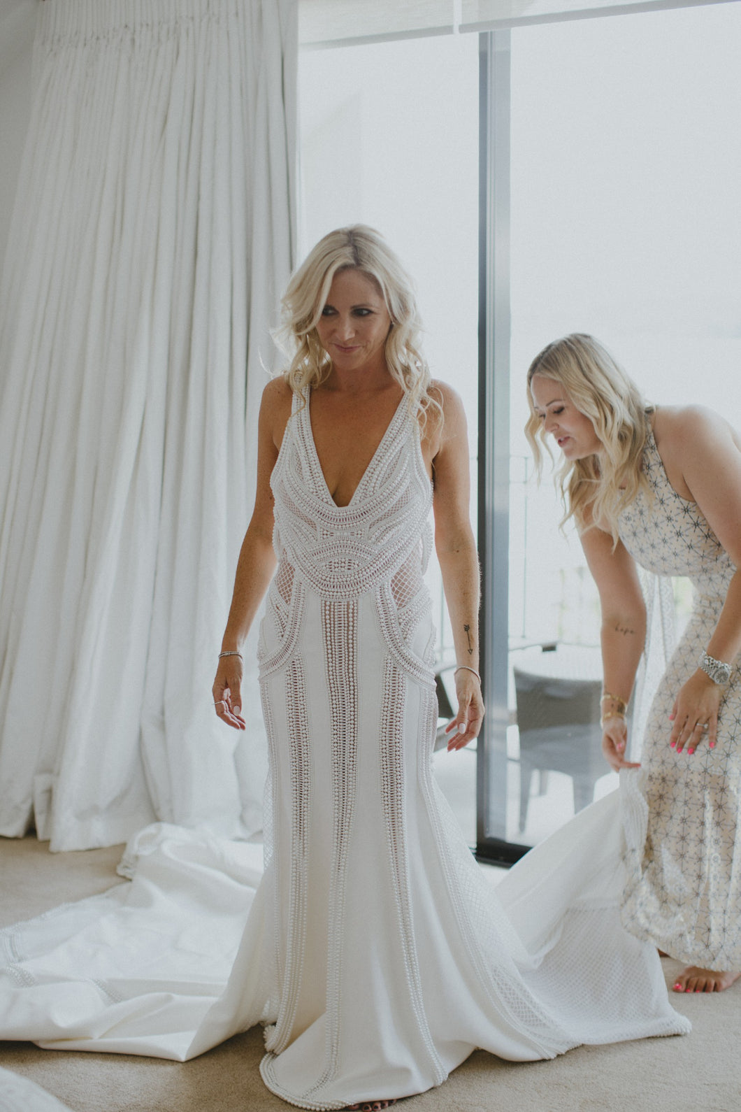 Indulge in pure elegance with #style C2024-JT72 #wedding gown. This sheer pearl beaded dress features a mesmerizing backless design, #perfect for the confident and sophisticated bride. Inspired by J'aton Bridal, the V-bust line adds a touch of high #fashion to your #special #weddingday.