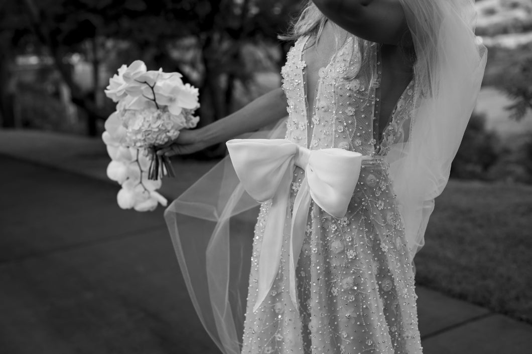 Exude sophistication and grace with our C2024-LPG72 sleeveless v-neck wedding gown, inspired by the elegant Valentina by Lee Petra Grebenau. This luxurious gown features a stunning large bow and a backless design, perfect for the modern bride who wants a touch of classic charm. Walk down the aisle with confidence in this breathtaking gown.