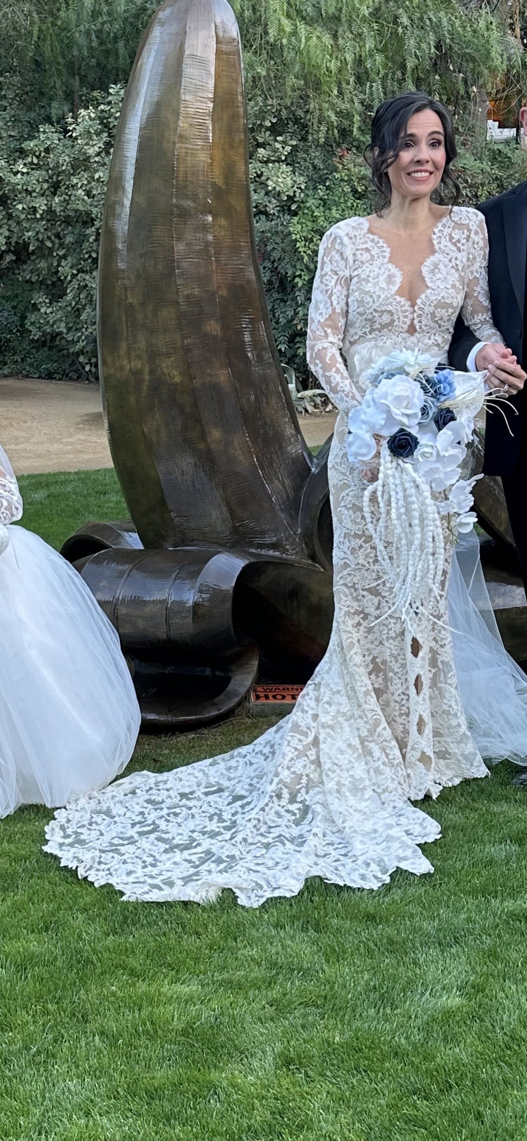 C2024-LS525 - Long Sleeve Lace Wedding Gown with Scalloped V-Neck Bust Line