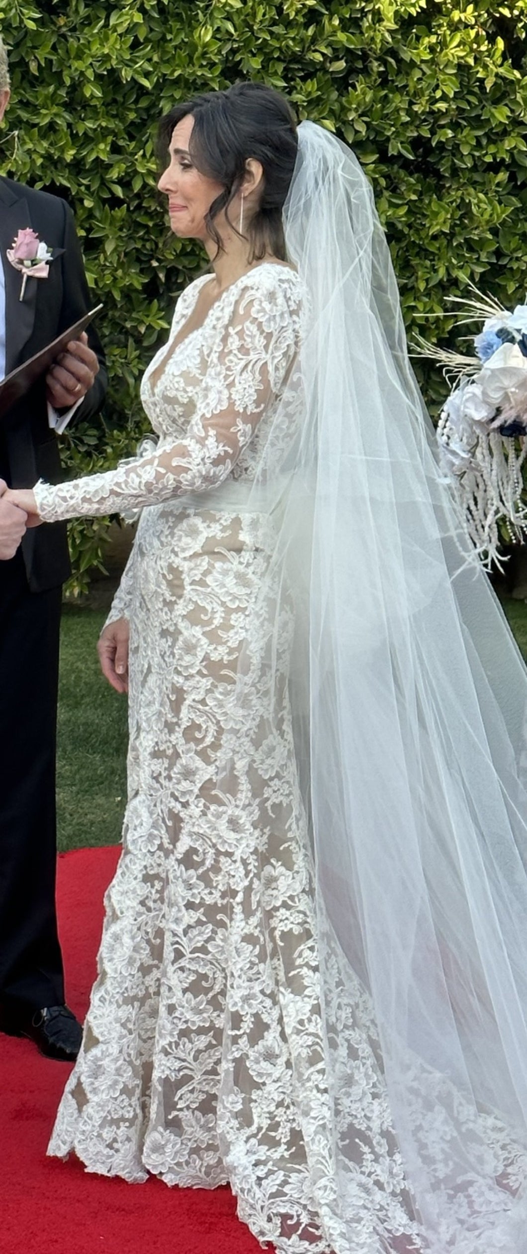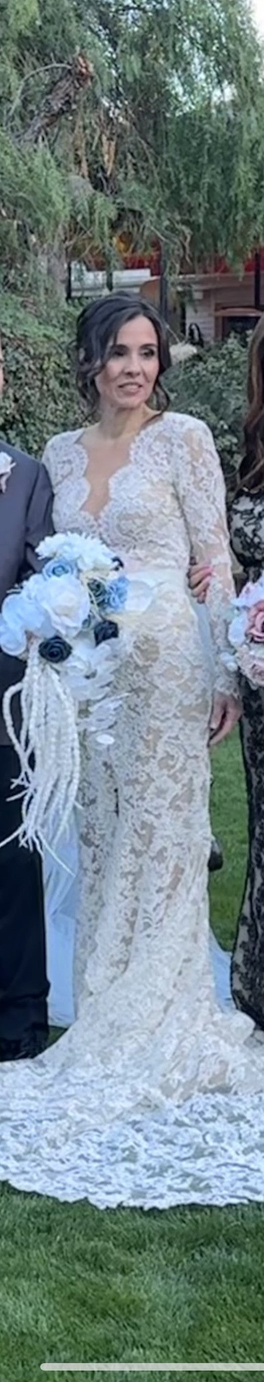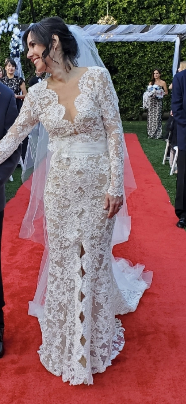 Get this Long Sleeve Lace Wedding Gown with Scalloped V-Neck Bust Line made with any design changes.