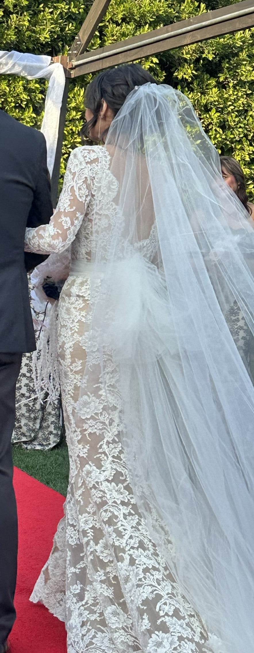 Indulge in the ultimate in luxury and sophistication with our C2024-LS525 wedding gown. Crafted with delicate lace and featuring a scalloped V-neck bust line, this long sleeve gown exudes elegance and grace. Make a statement on your special day with this exclusive and timeless piece, perfect for the discerning bride.