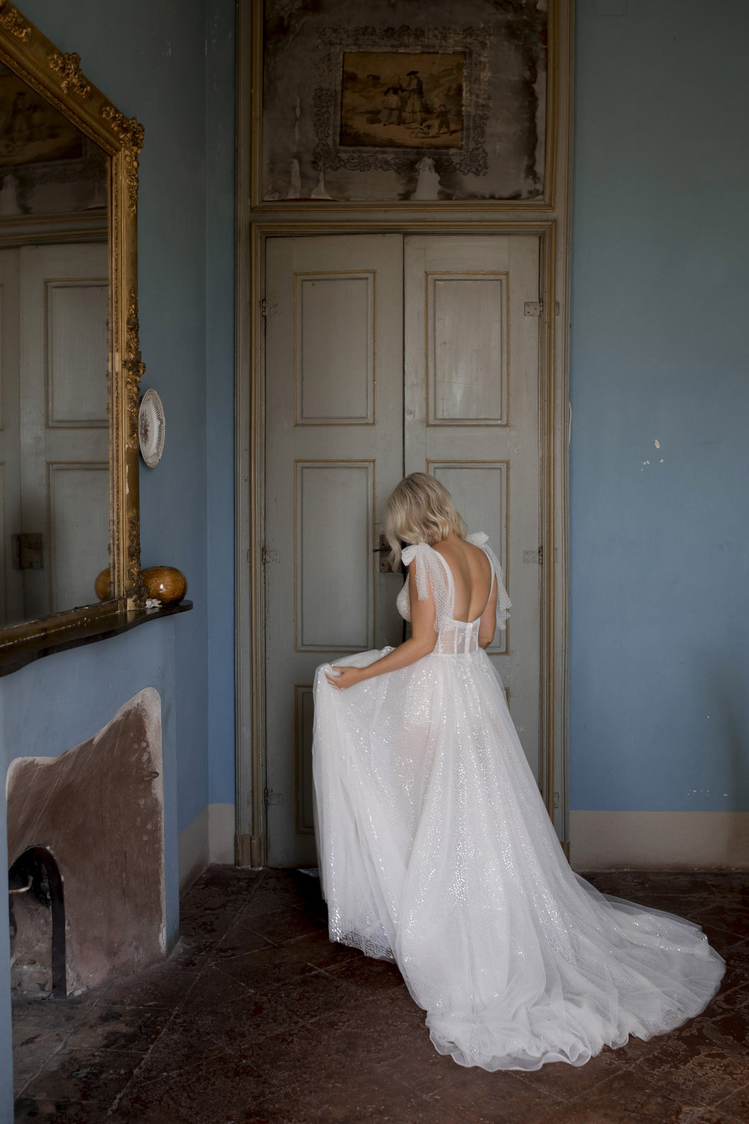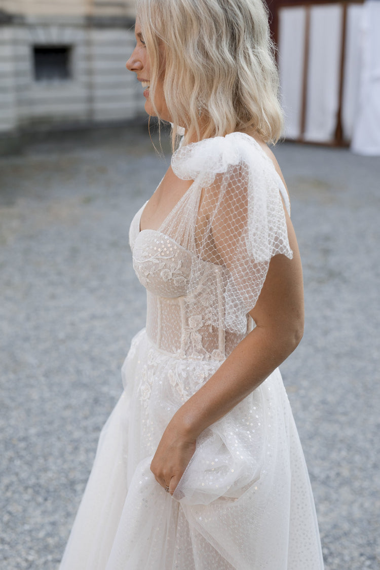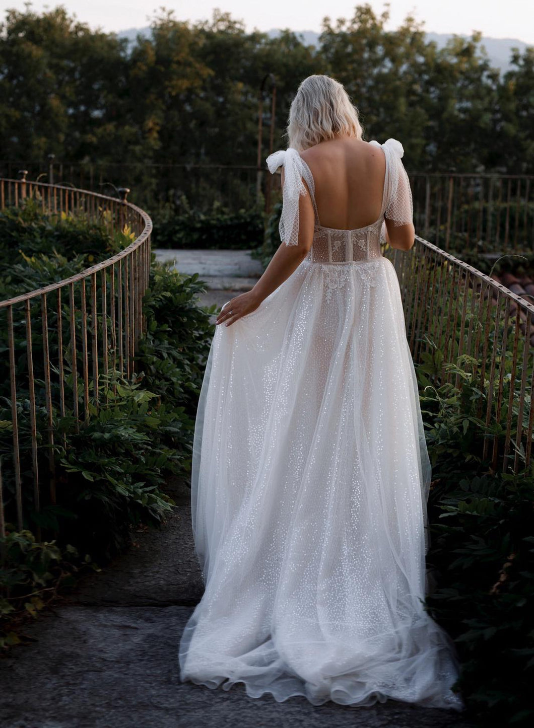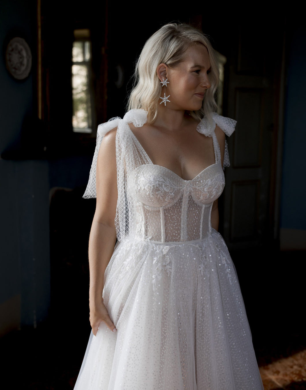 Feel like a princess on your special day with #style C2024-MBB7 #weddingdress. Show off your curves in the corset top and sheer shoulder straps, while the a-line ball gown skirt adds a touch of #elegance. Inspired by The Donna from Muse By Berta, this dress is sure to make you feel confident and #beautiful.