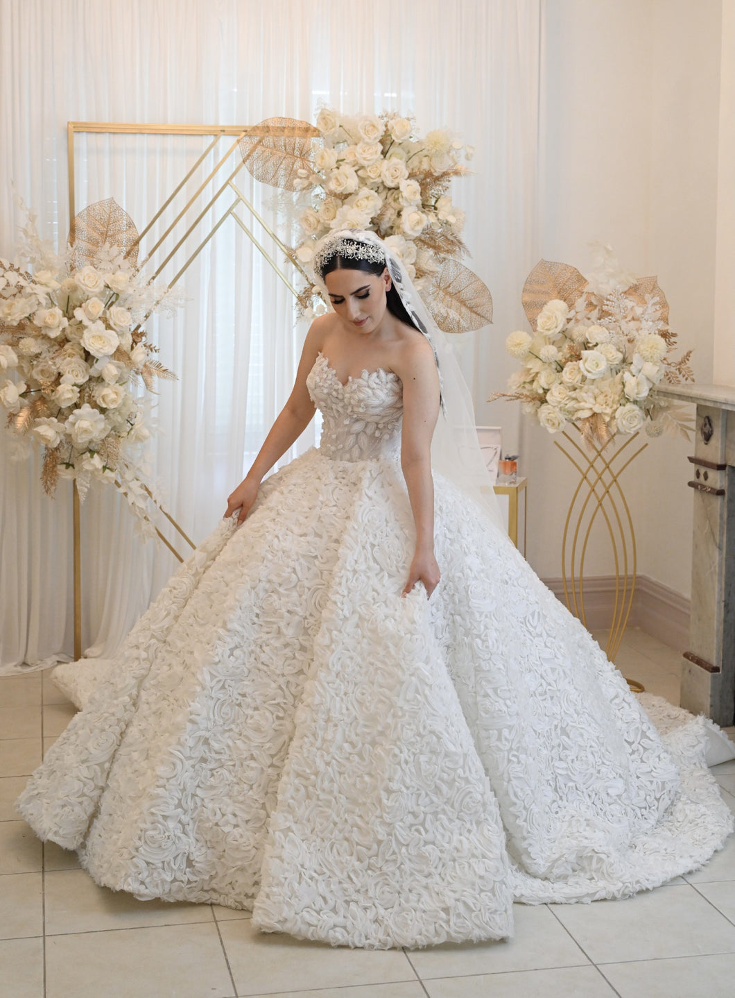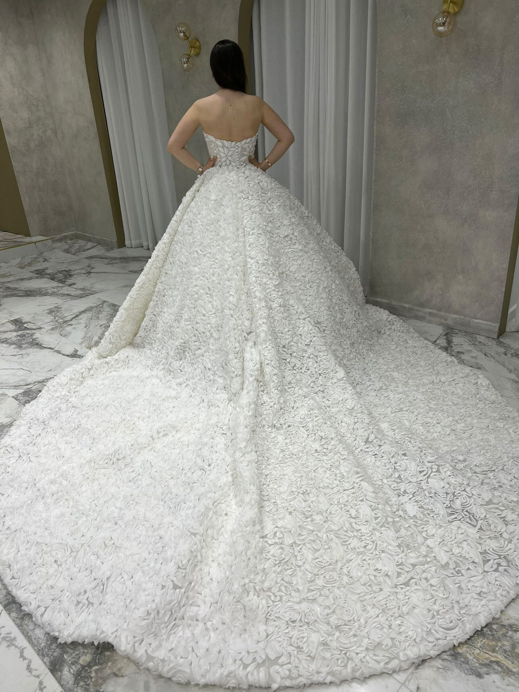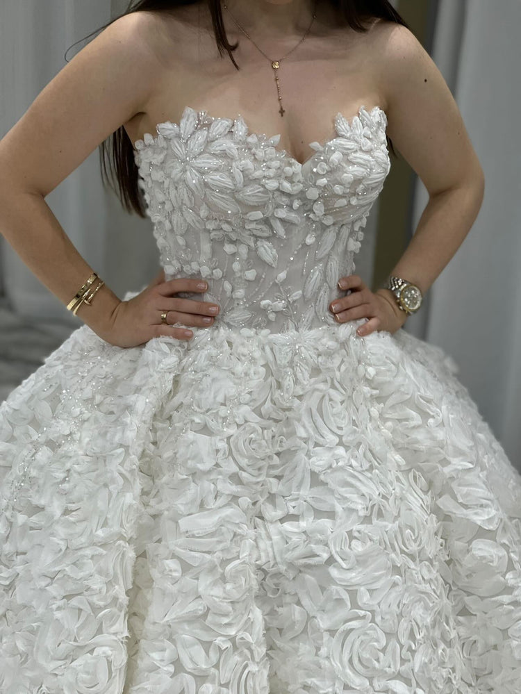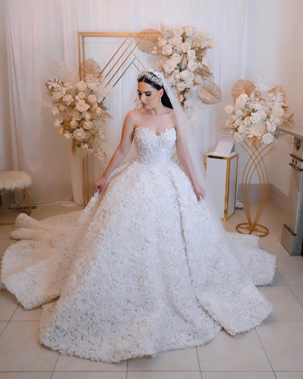 Introducing #style C2024-NAL571 strapless ball gown #wedding #dress, featuring exquisite 3D embellishments inspired by Norma And Lili Bridal Couture. Embrace luxury and elegance on your #special #weddingday with this enchanting dress. Be the center of attention with its intricate details and stunning silhouette.