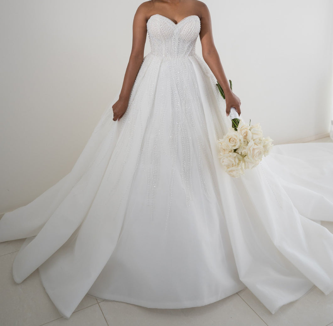 Inspired by Norma and Lil Indulge in pure elegance with the C2024-NAL66 strapless sweetheart ball gown #wedding #dress. The #beautiful beading adds a touch of sparkle to the classic ball gown silhouette, making you feel like a true princess on your special #weddingday. Say "I do" in style with our luxurious and sophisticated gown.