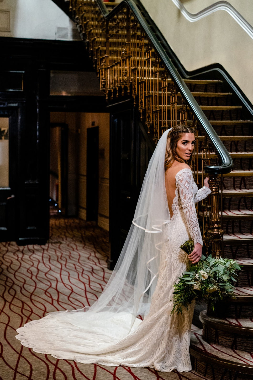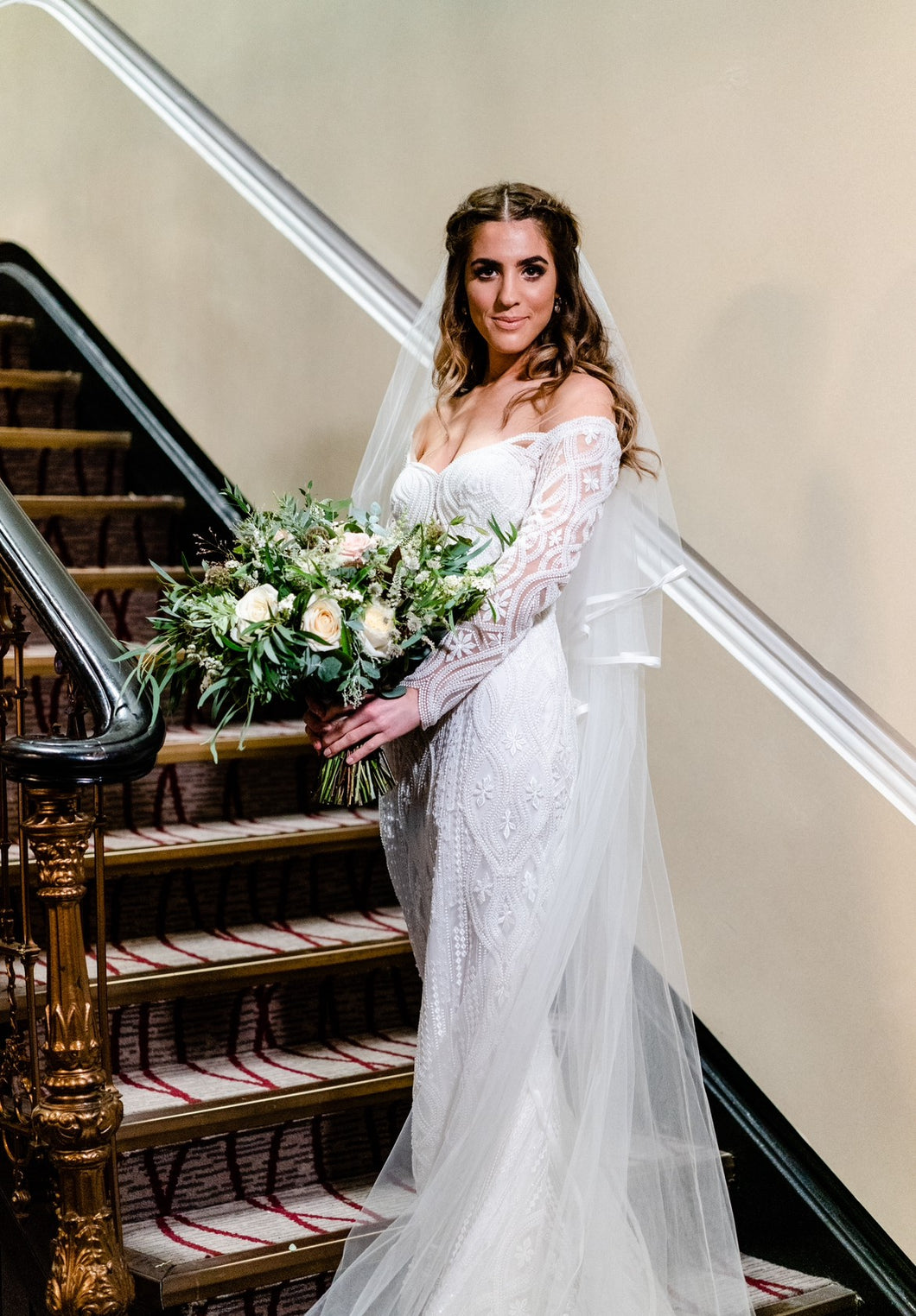 This couture long sleeve #wedding gown is a stunning masterpiece, featuring intricate embroidery and dazzling beading that is sure to catch the eye. Inspired by #designer Pronovias, this gown exudes #elegance and sophistication. #Perfect for the modern bride looking for a touch of luxury on her #special #weddingday.