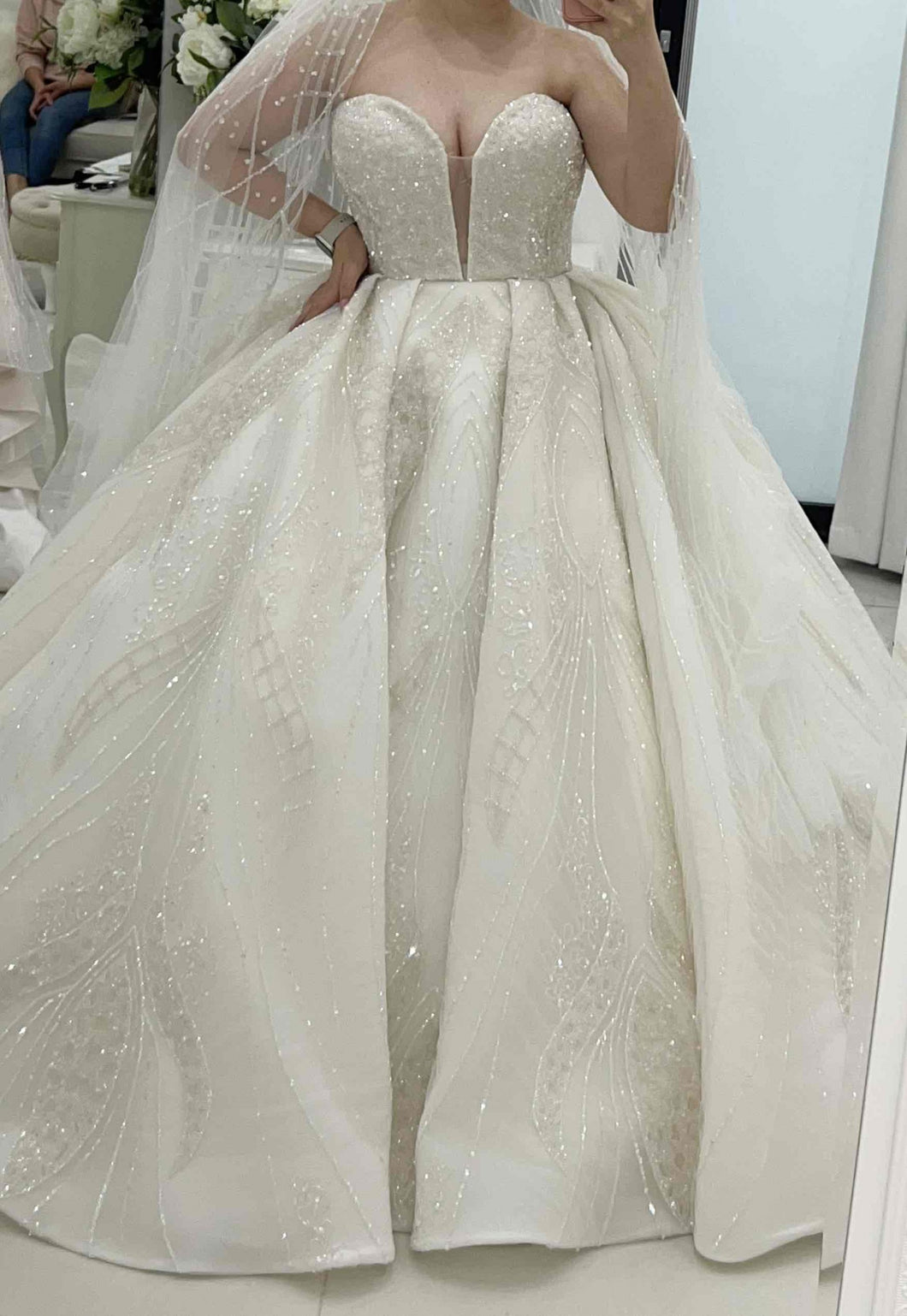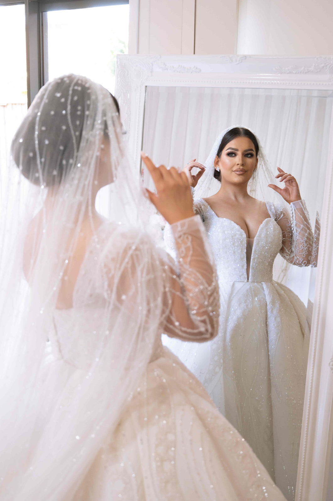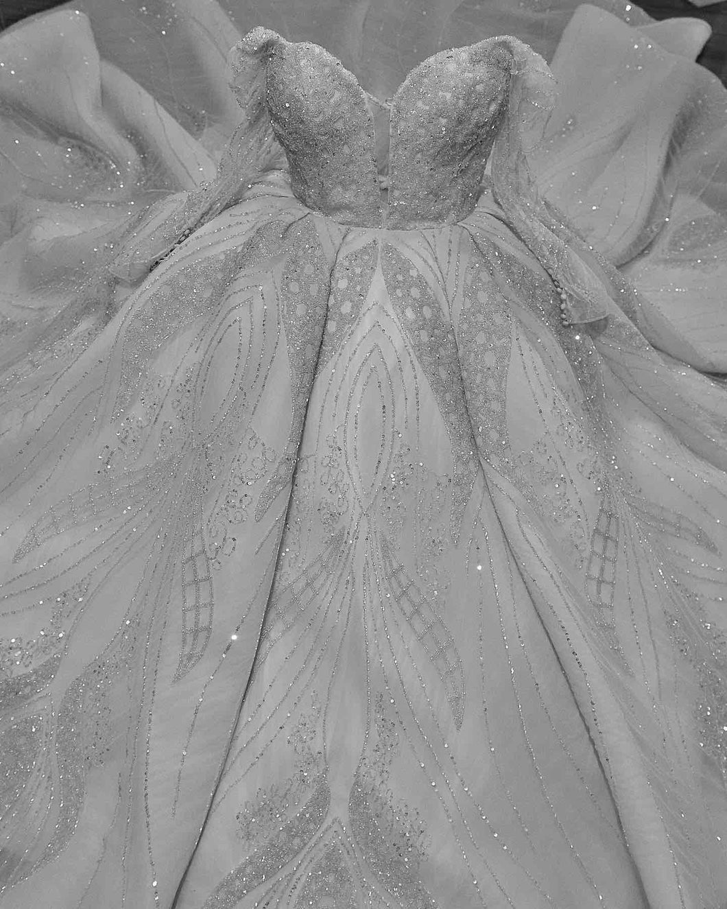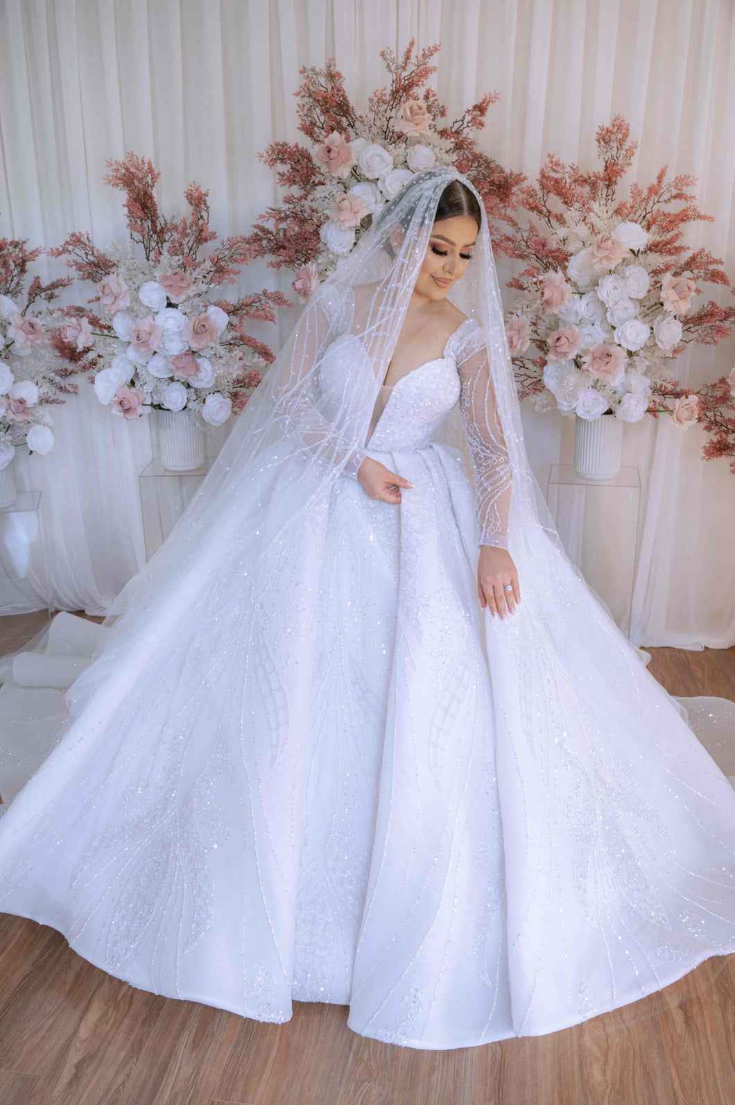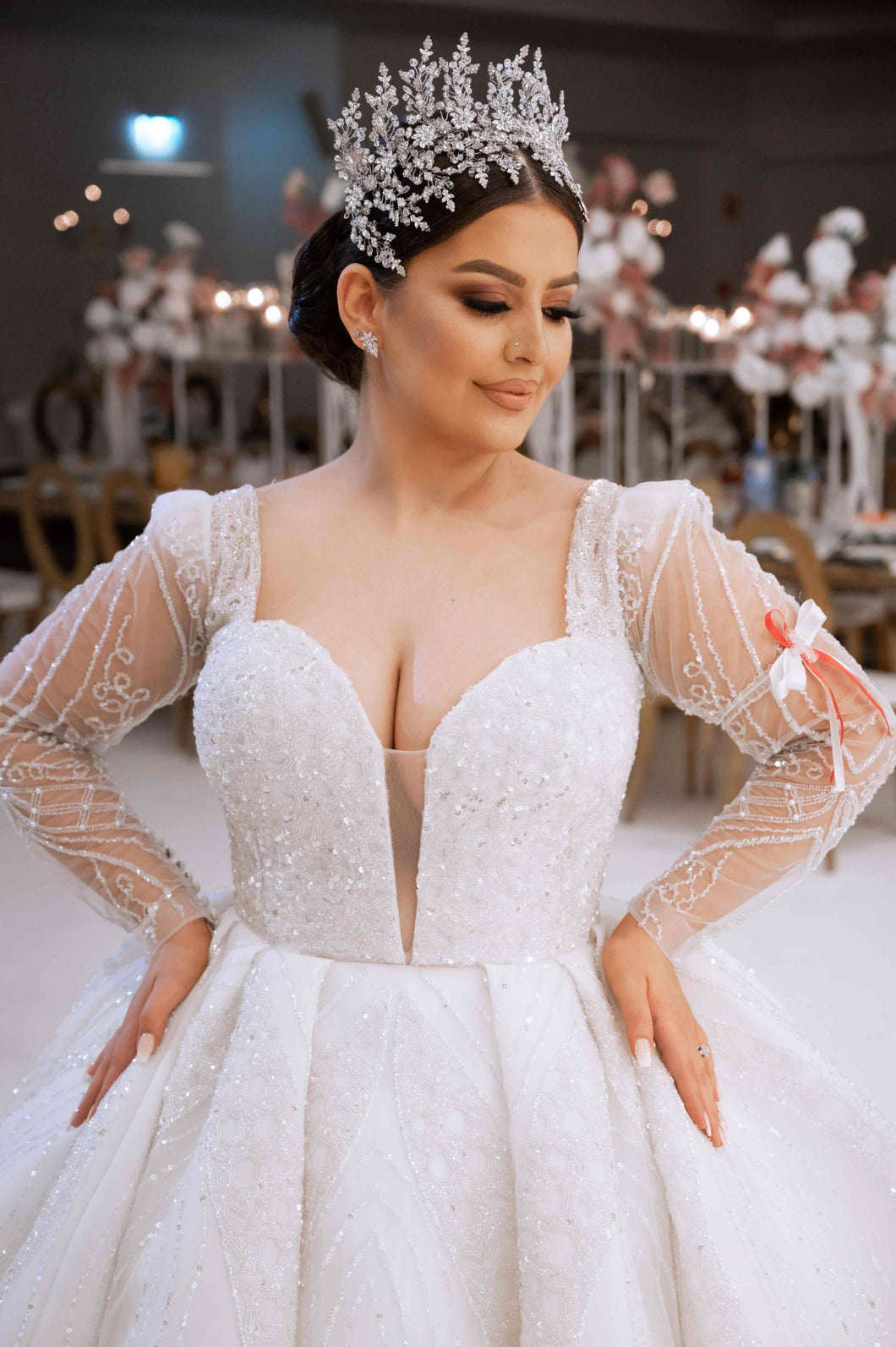 Elevate your wedding day look with #style C2024-SB535 ballgown, adorned with intricate #crystal beadwork and long sleeves inspired by Suzanna Blazevic. This luxurious gown exudes #elegance and sophistication, making you the center of attention on your #special #weddingday. Embrace the #art of couture in this #timeless piece.