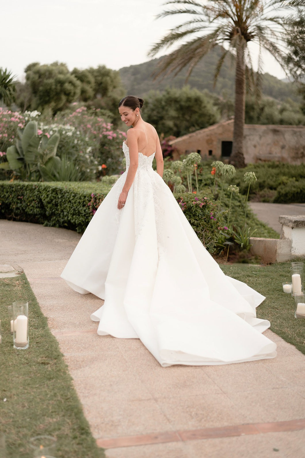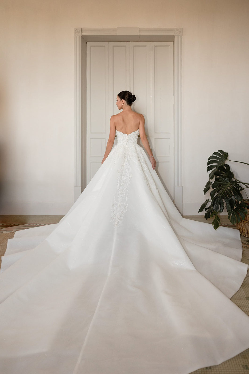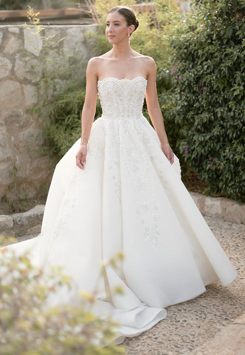 C2024-SBG1199 - strapless ball gown wedding dress with pearl beaded lace embellishments