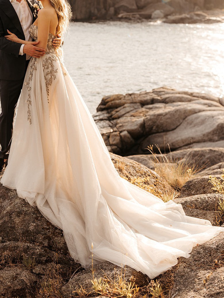 This stunning C2024-SBG49 wedding gown features a strapless sweetheart neckline and intricate 3D beaded embroidery, adding a touch of elegance and sophistication to your special day. Feel confident and beautiful as you walk down the aisle in this timeless piece.