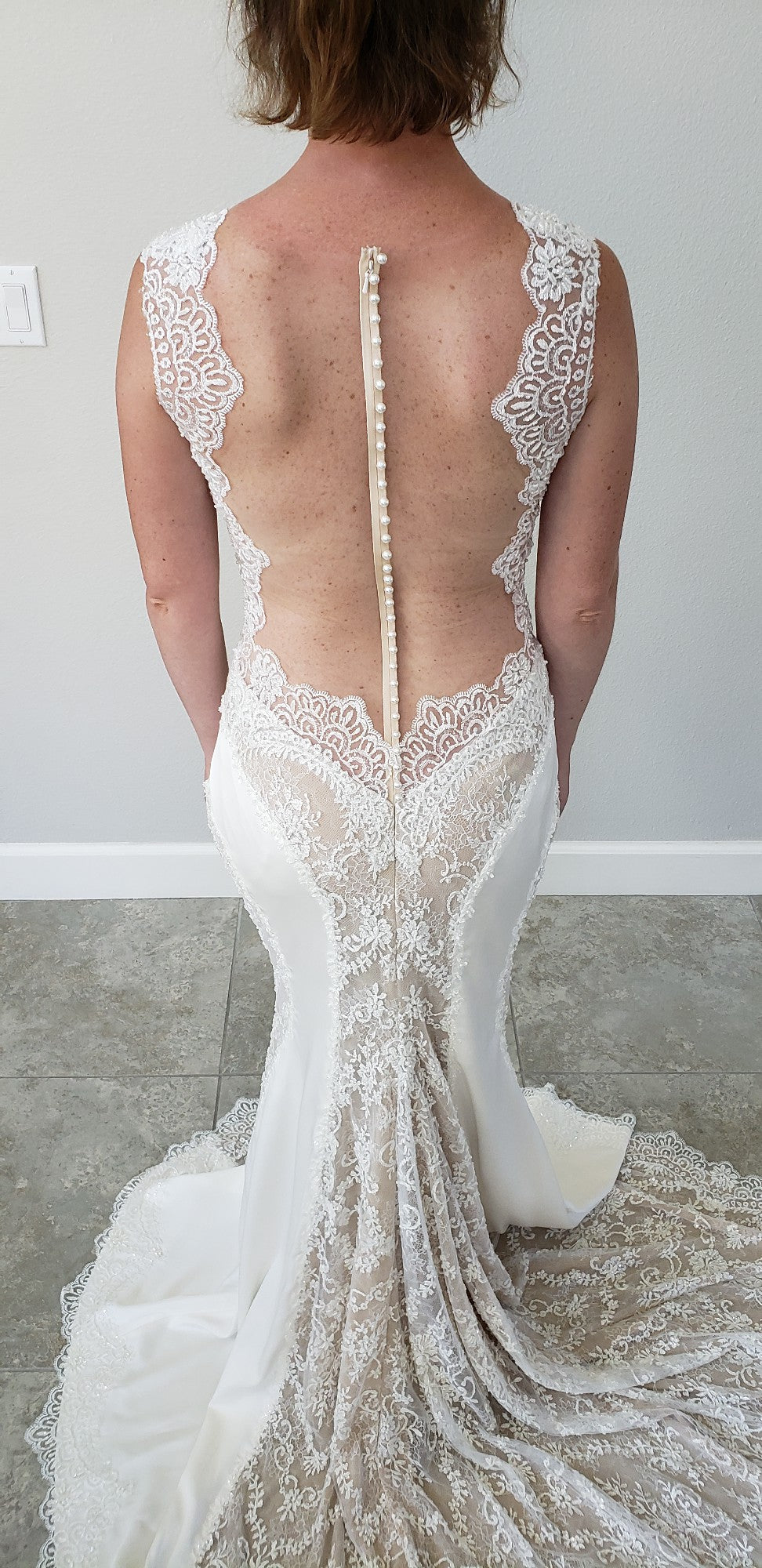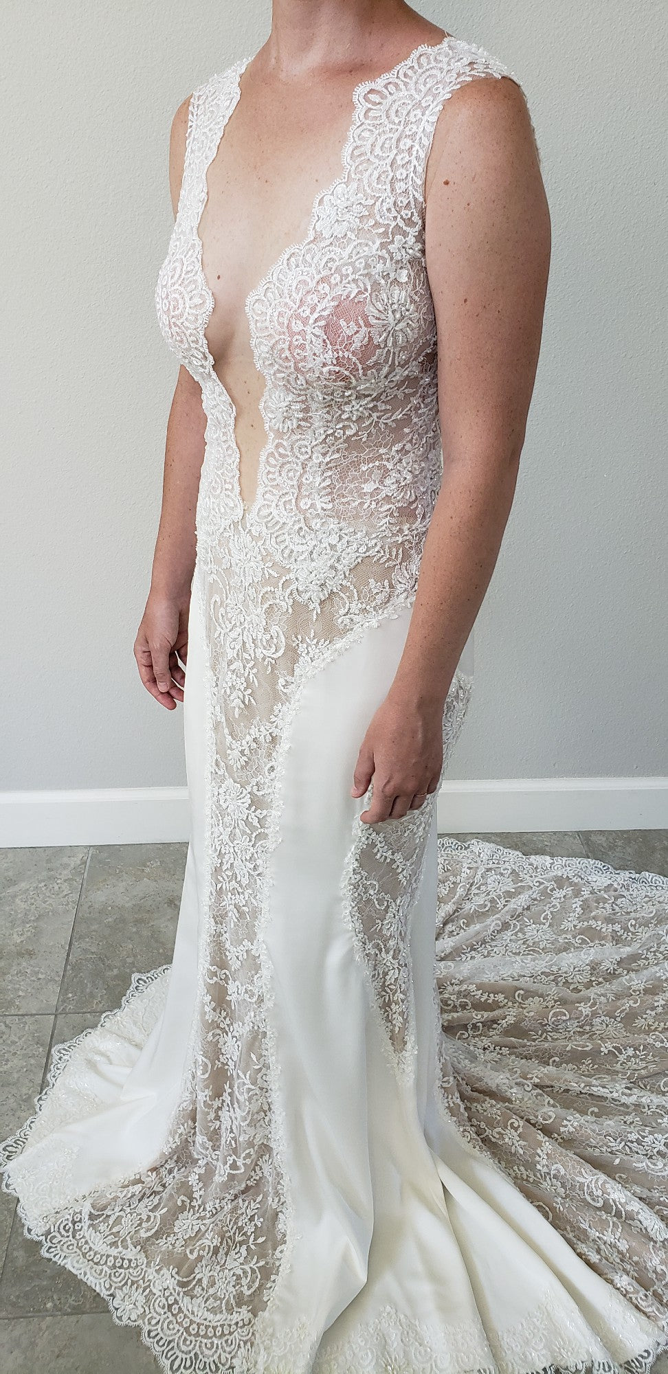 This stunning lace #weddingdress will make you feel like a queen on your #special #weddingday. The sleeveless #design and deep v-bust line will accentuate your curves, while the sheer back and panels add a touch of sexiness. Walk down the aisle with confidence and grace in this #beautiful #dress.