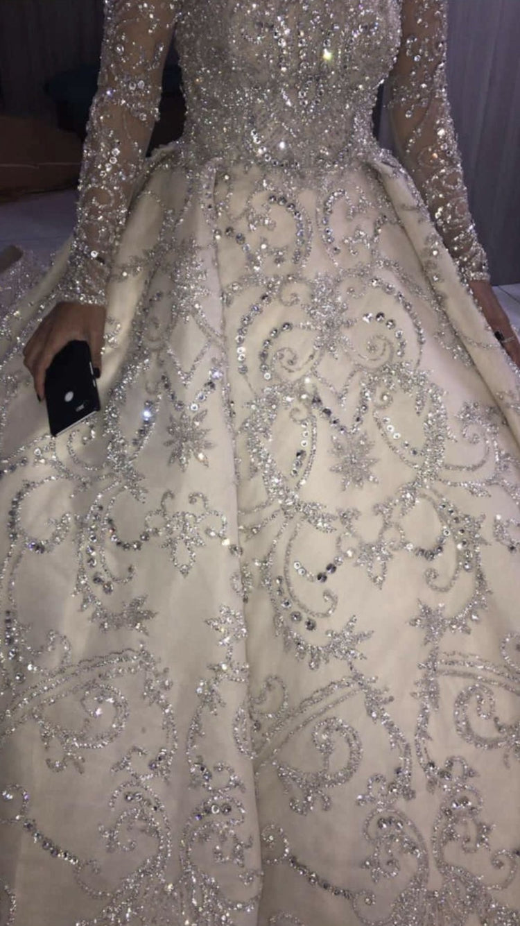 Indulge in luxury on your wedding day with #style C2025-BG810 gown. Adorned with exquisite Swarovski crystals and featuring a stunning ball gown silhouette with long sleeves, this #dress is the epitome of elegance and sophistication. Make a statement and feel like royalty on your #special #weddingday.