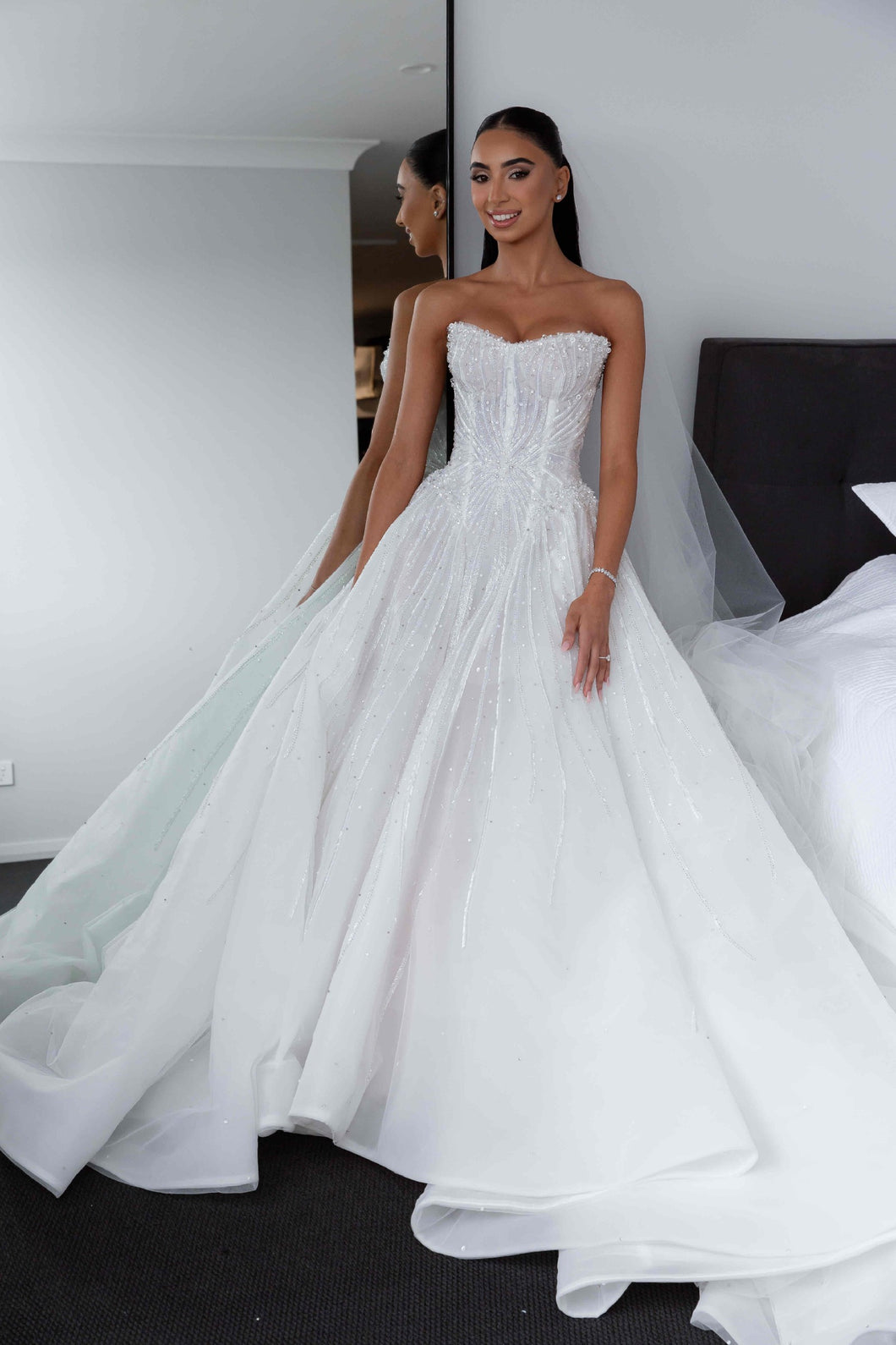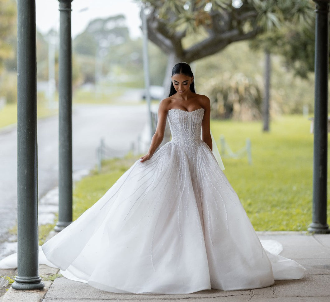 Feel like a princess on your wedding day with our C2025-LG91 ball gown! This strapless, sweetheart dress is elegantly designed with intricate beading, inspired by Leah Da Gloria. Radiate confidence and beauty as you walk down the aisle. Say "I do" in style and create an unforgettable moment!