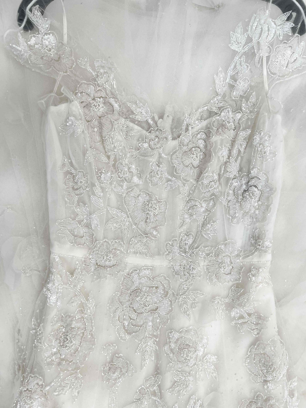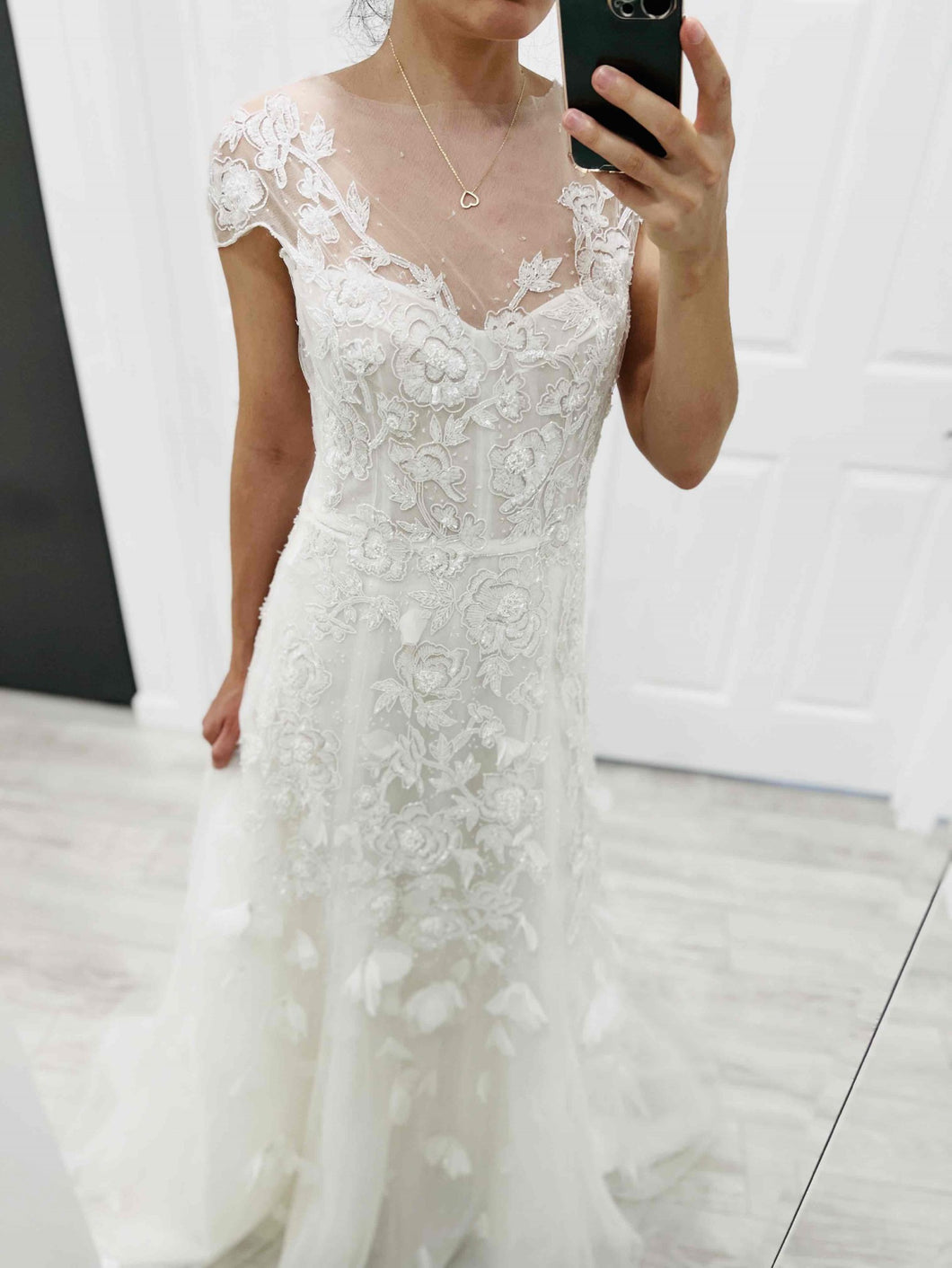 Indulge in luxury and grace with #style C2025-MS251 #wedding gown. With delicate short cap sleeves and a fitted silhouette, this gown exudes #elegance and sophistication. Inspired by the Selena by Marchesa, it features exquisite 3D embellishments that add depth and dimension to the #design. A perfect choice for the #modern #bride seeking a touch of opulence on her #special #weddingday.