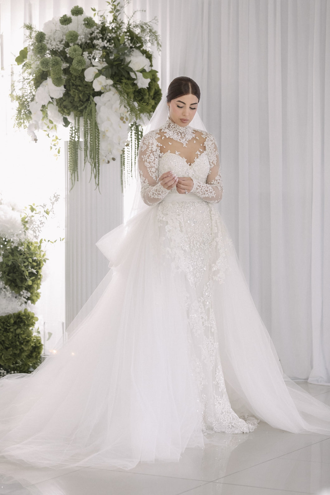 C2025-ZMLS01 - beaded long sleeve lace wedding gown