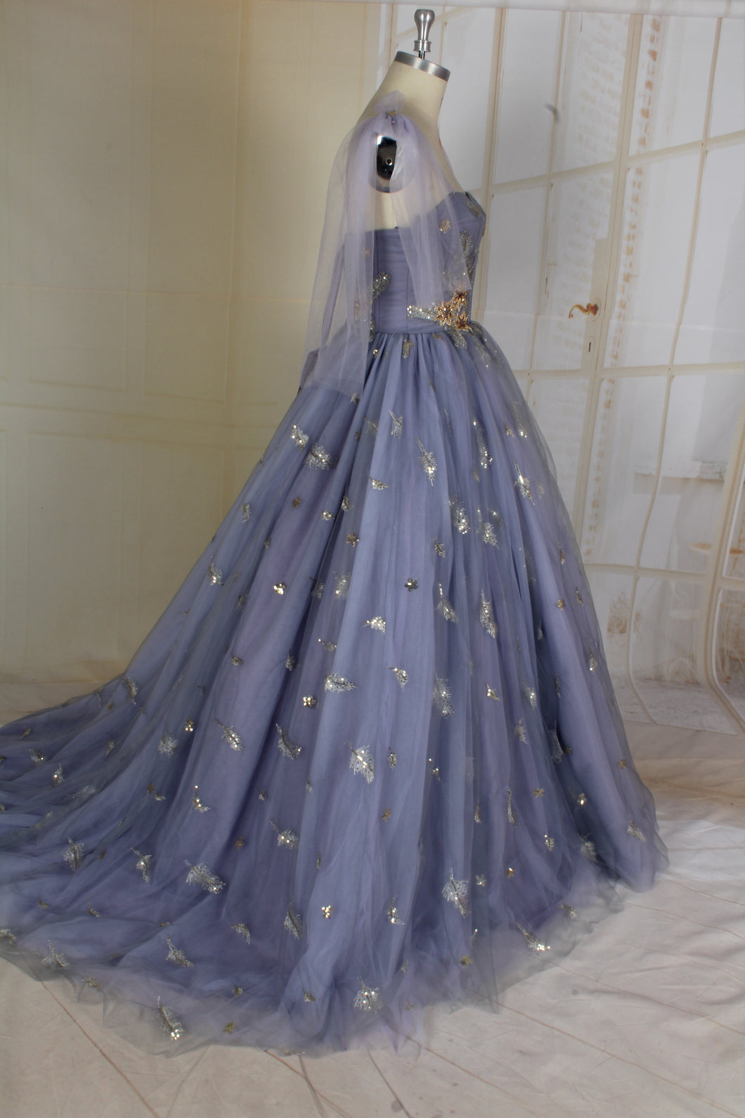 This Pastel Blue colored formal ball gown is instock as shown in a size 10.  You can also make changes to the #design if needed.