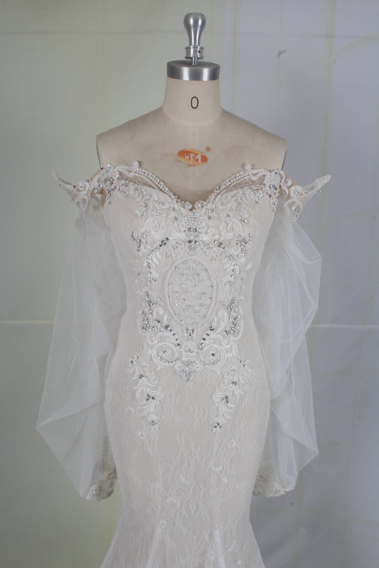 C2023-Hafizi - Off the shoulder cuff bishop long sleeve wedding gown