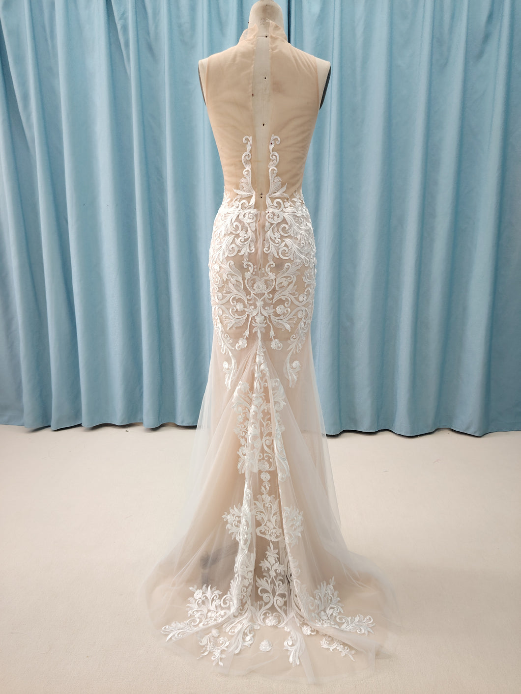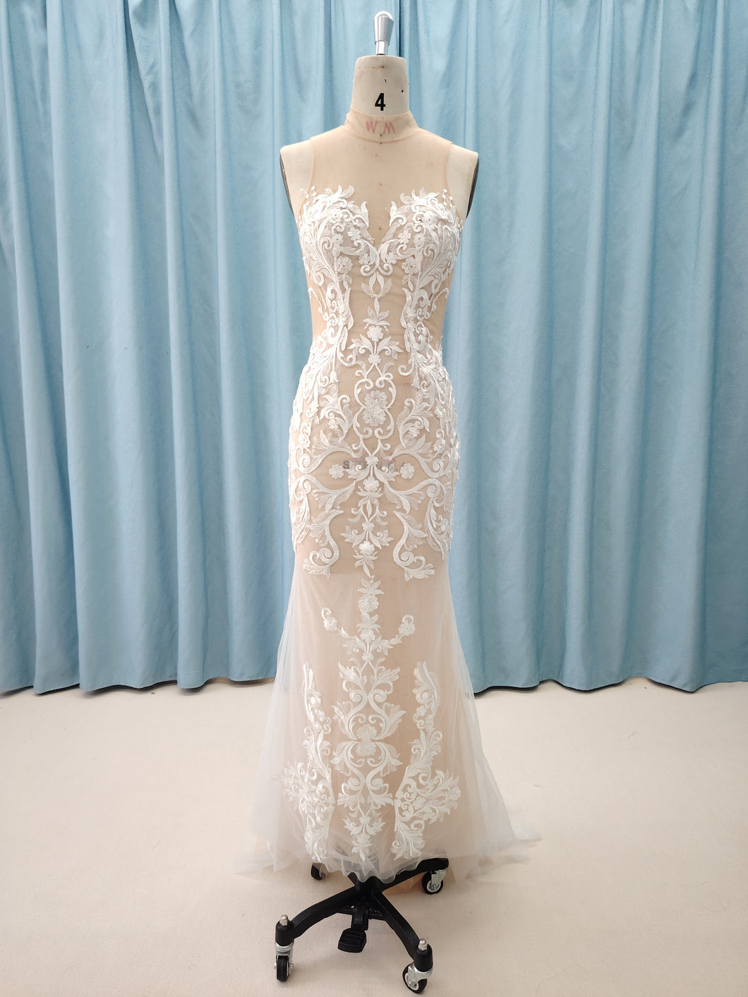 C2024-YG-FS939 - sheer illusion neck embroidered wedding gown
