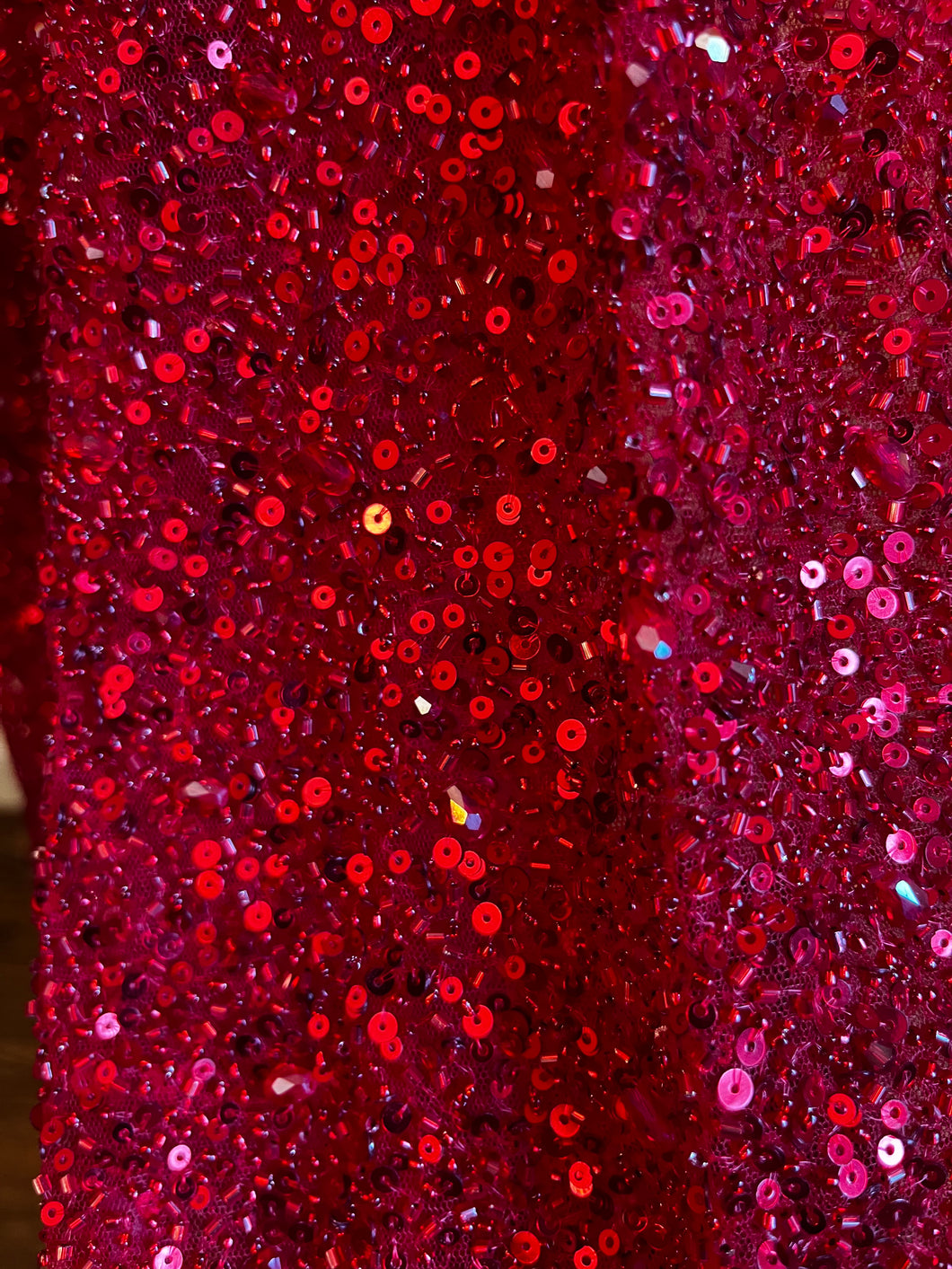 Style RM5193 - Replica of a Reba McEntire red long sleeve beaded pant suit