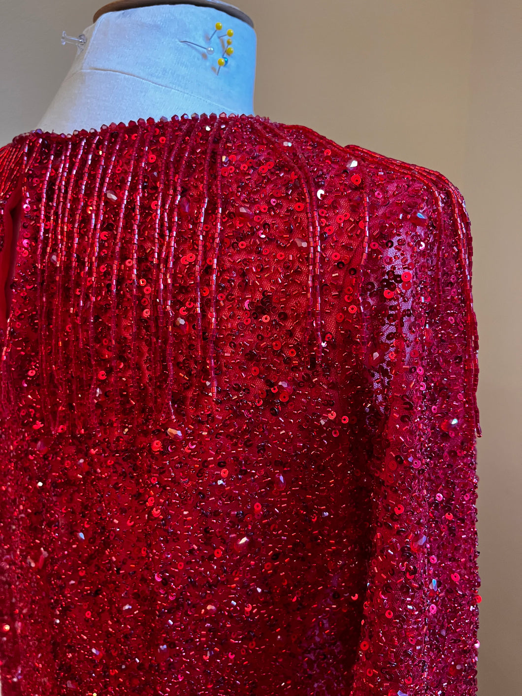 This is a replica of a Reba McEntire red long sleeve beaded pant suit that a client requested us to make for their show. This coudl be used for a #pageant or any other #special occasion. We can remake this #formal garment for you in any color, size or with any #design changes.