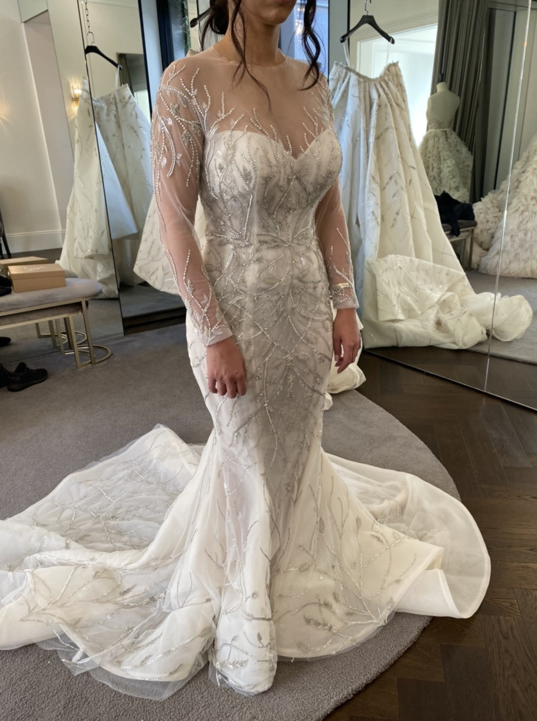 Indulge in luxury with our C2024-LSC61 wedding gown. Crafted with sheer long sleeves, this gown boasts intricate details of sparkling swarovski crystals and an illusion neckline. A perfect blend of sophistication and elegance for your special day. Make a statement that will leave everyone enchanted.