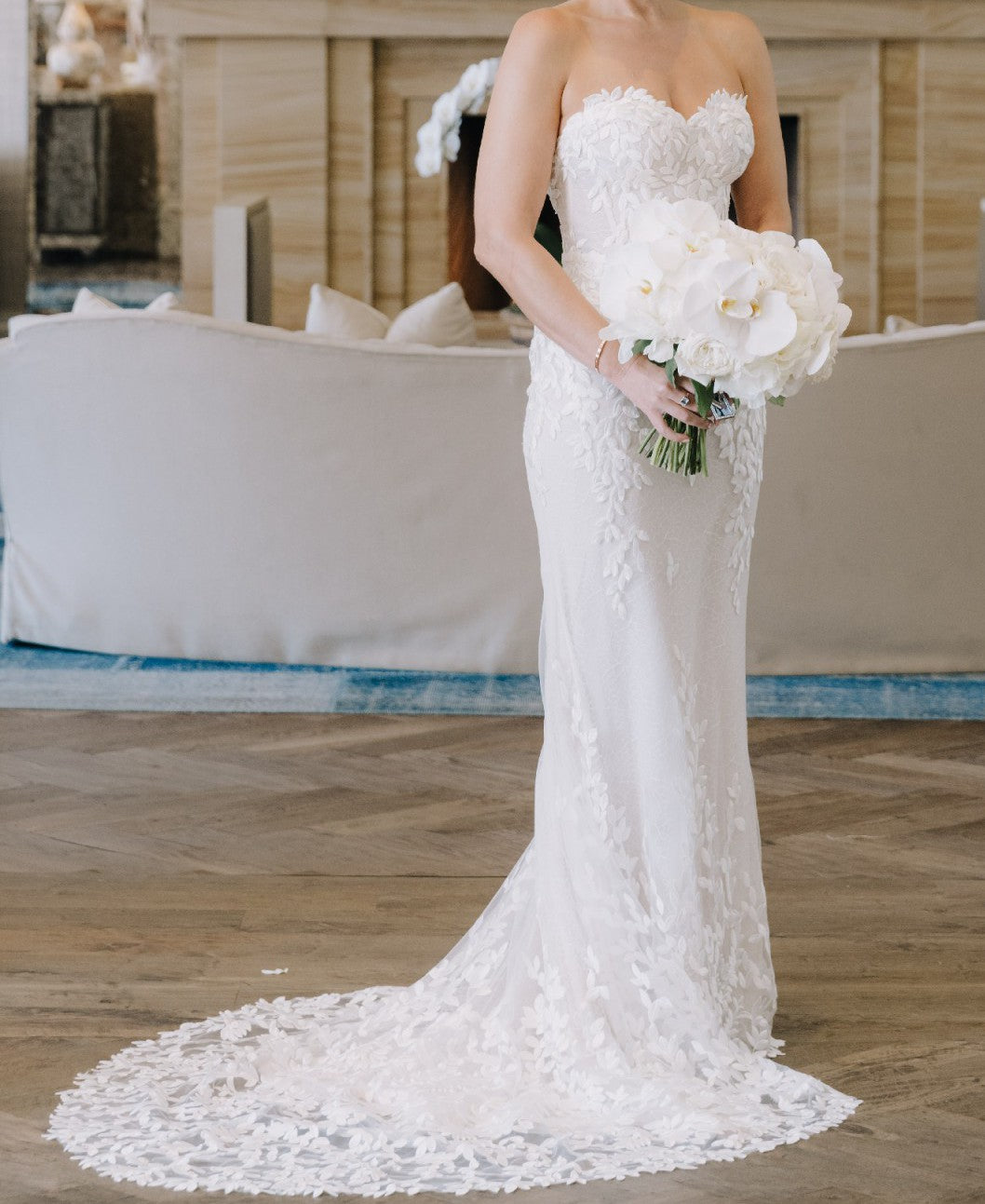 C2024-SF91 - vestido de novia sin tirantes con escote corazón y adornos con motivos florales