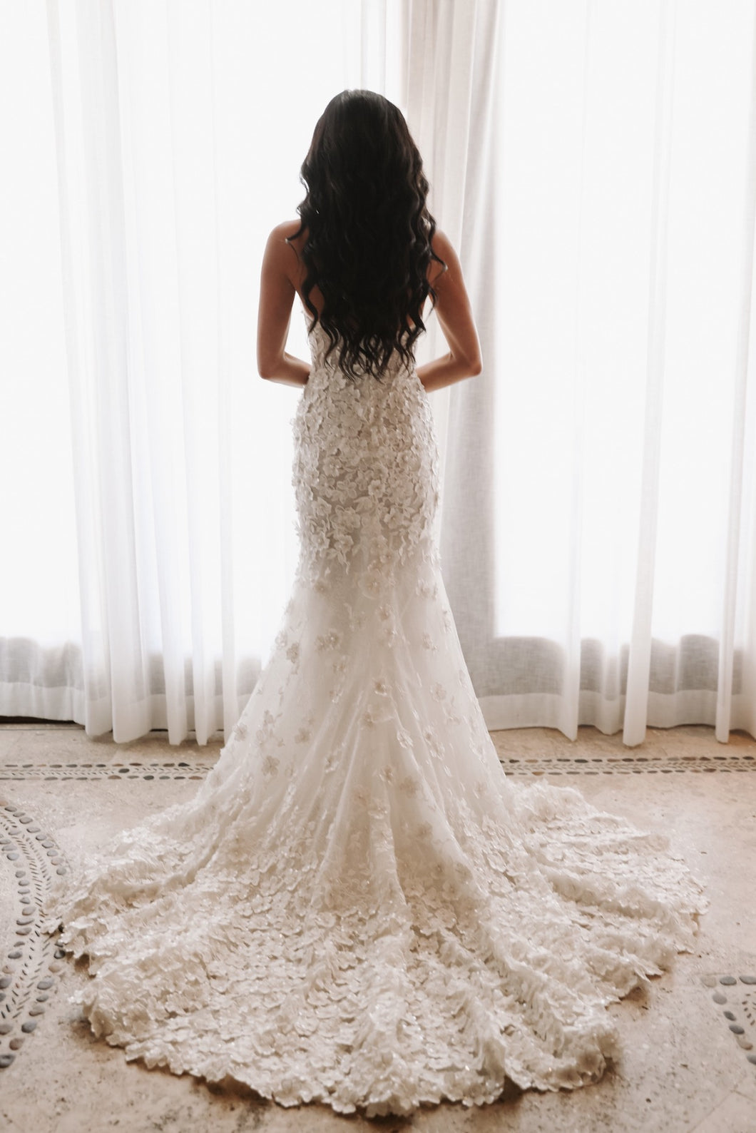 Realce el día de su boda con nuestro vestido C2024-SL38. El diseño sin tirantes rezuma lujo mientras que la silueta fluida aporta una sensación de belleza etérea. Adornado con exquisitos adornos de encaje y pedrería, este vestido te hará sentir como una obra de arte mientras caminas hacia el altar.