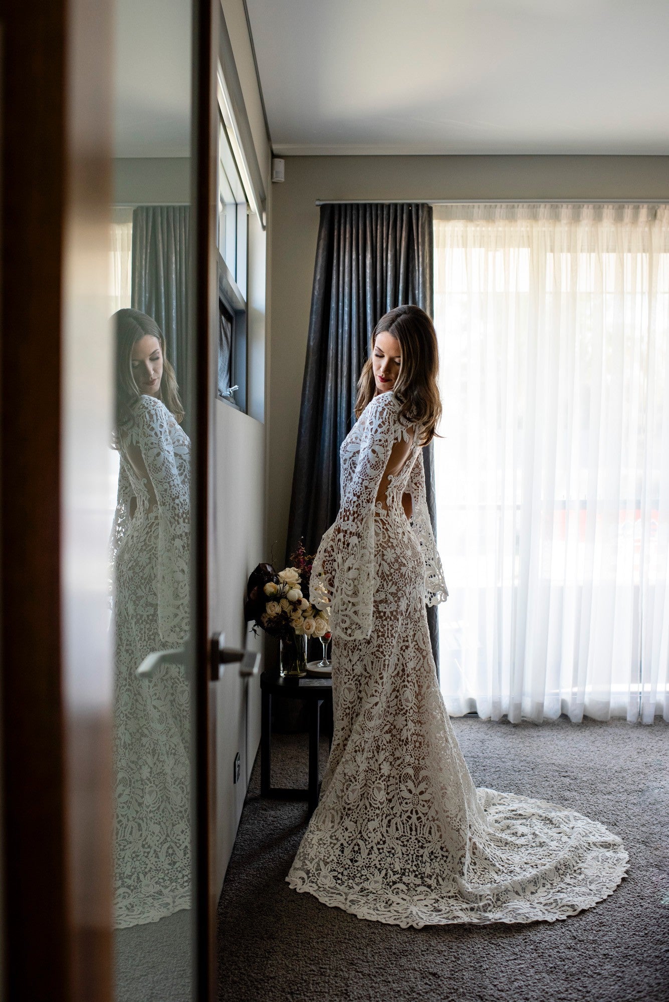 C2025-ES682 - long sleeve lace embroidered wedding gown
