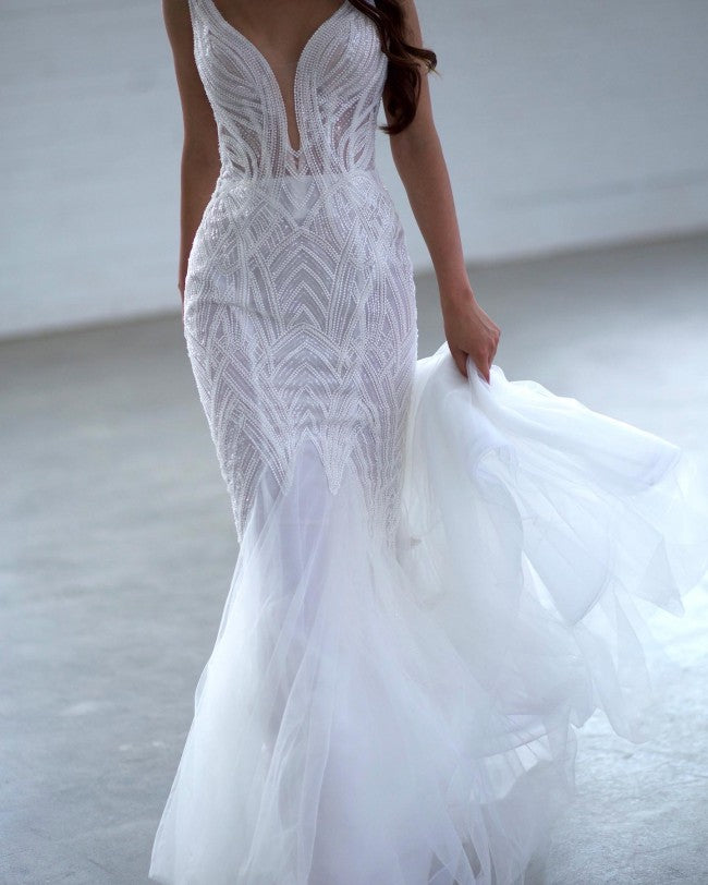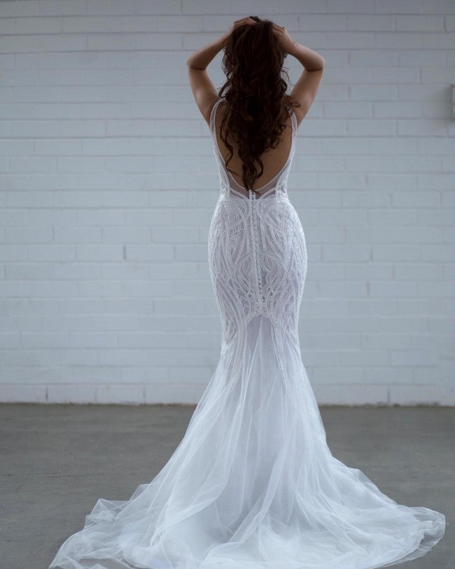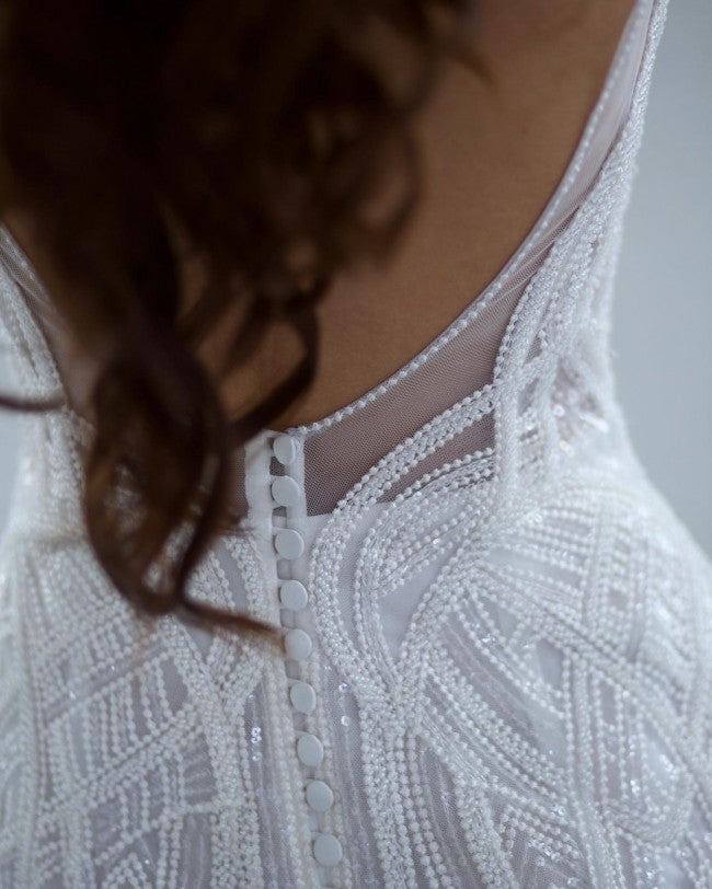 Obtenga este sexy vestido de novia con pedrería y escote en V, sin mangas, hecho a pedido como se muestra o con cambios de #diseño si es necesario.