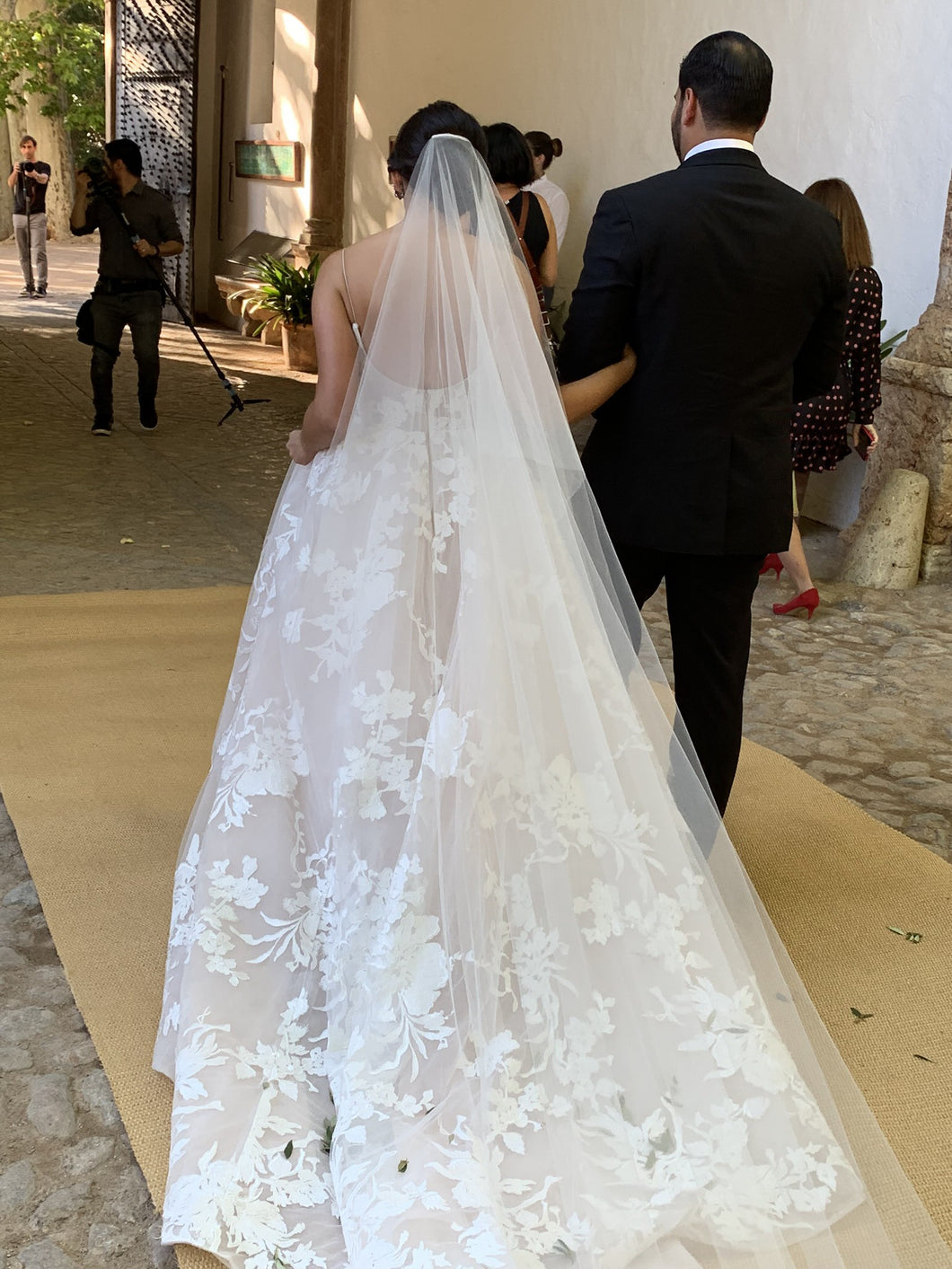 C2023-AL63T - Vestido de novia de corte A con tirantes finos y encaje estampado con bordado grande