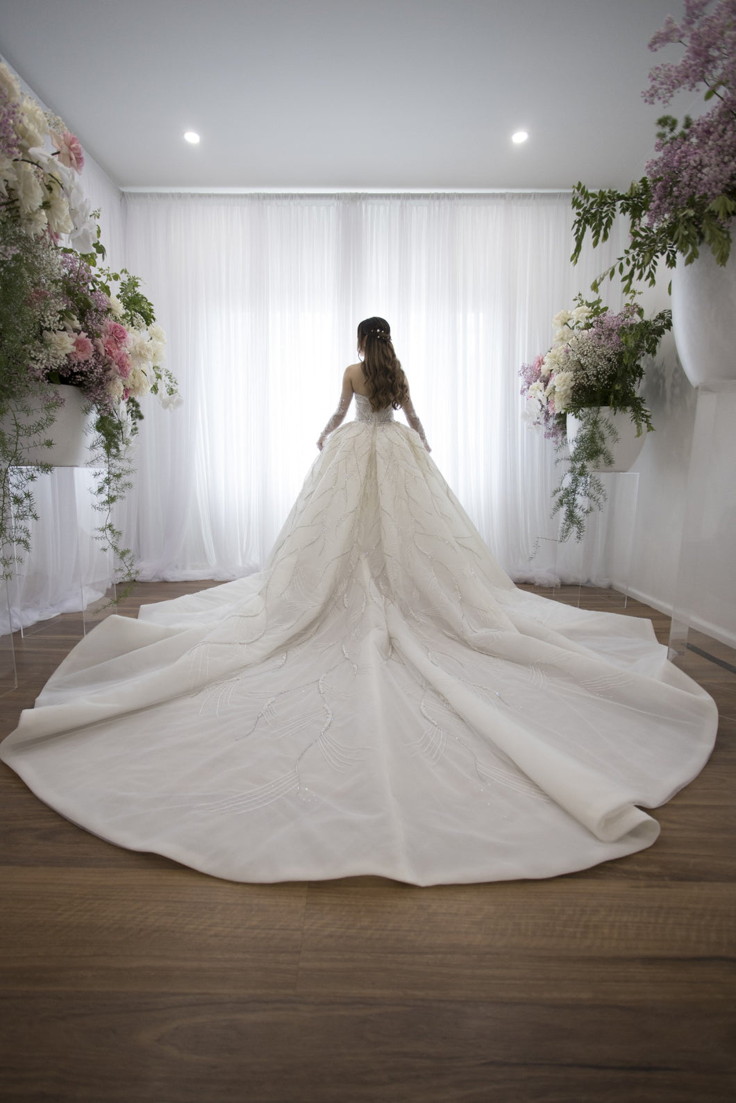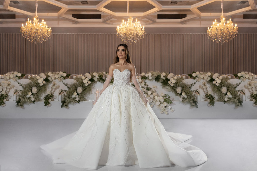 Disfrute del lujo con nuestro vestido de novia con vestido de gala C2023-BG71Y. Esta pieza elegante y exclusiva presenta mangas transparentes desmontables adornadas con delicadas cuentas. Perfecto para una ocasión formal, este vestido seguramente te hará sentir como una obra de arte en tu día especial.