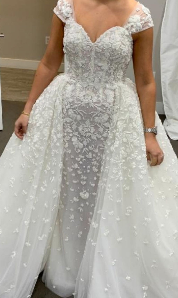 C2023-CS081 - Vestido de novia de encaje con pedrería y manga corta con falda desmontable