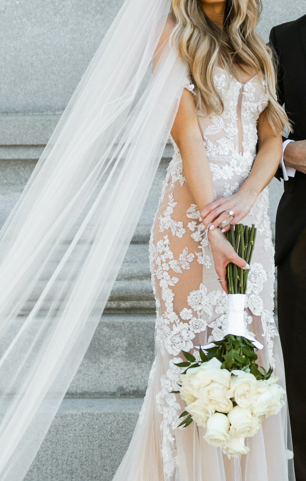 Descubra el glamour con el vestido de novia C2023-LP97, un lujoso vestido de encaje transparente confeccionado para brindarle una silueta elegante. Confeccionado por expertos con bordados ornamentados, este vestido agregará un toque de sofisticación a su día especial. Póntelo para lograr una apariencia atemporal que te hará lucir y sentirte hermosa.