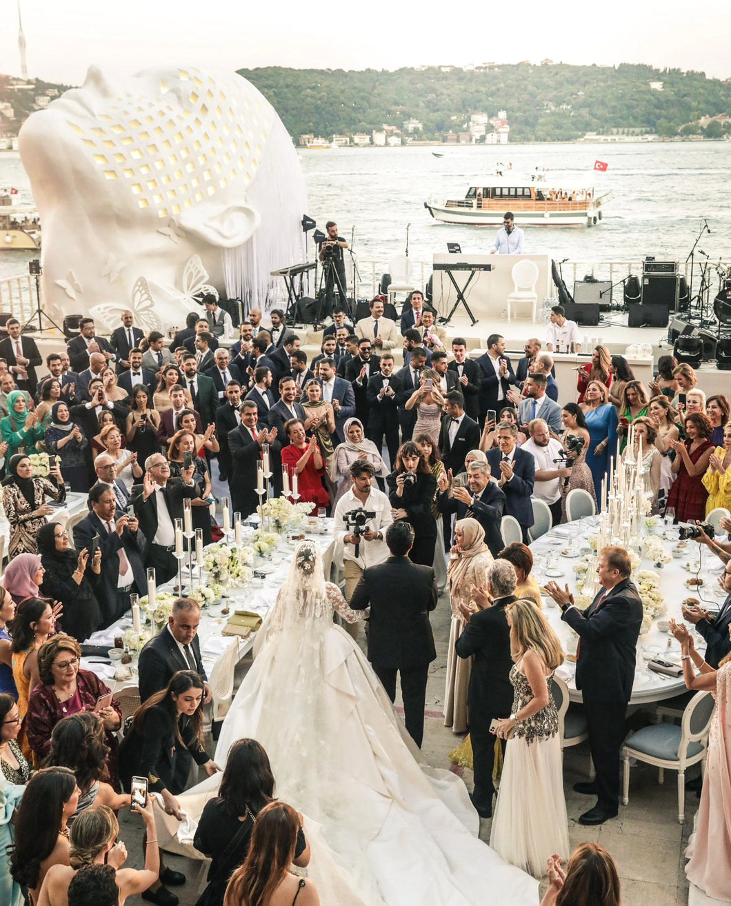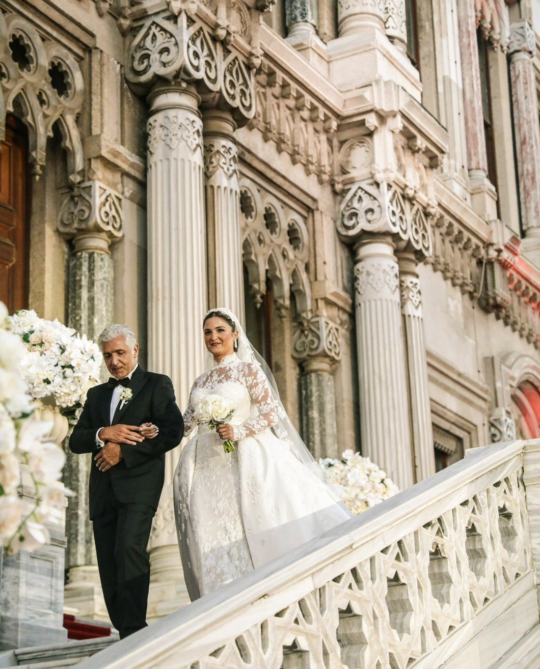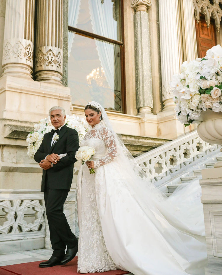 C2023-LS68x - Vestido de novia de encaje de manga larga con pedrería y escote ilusión transparente
