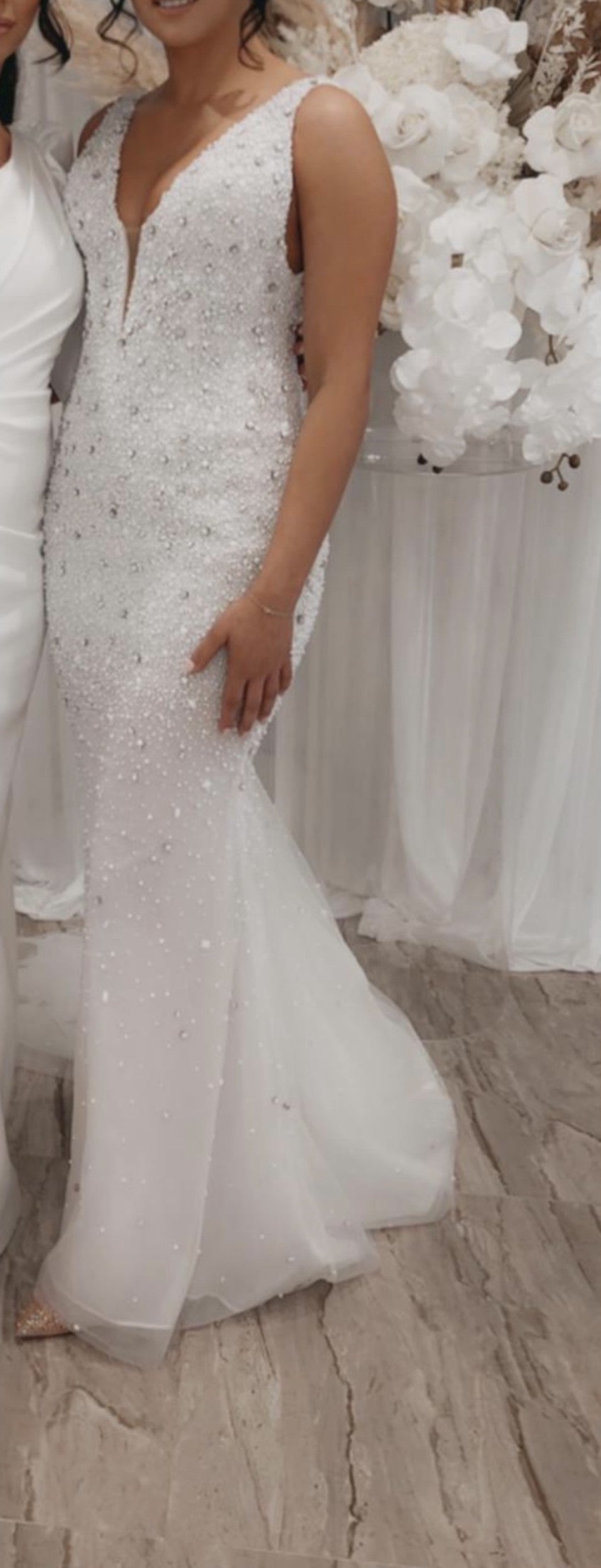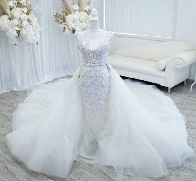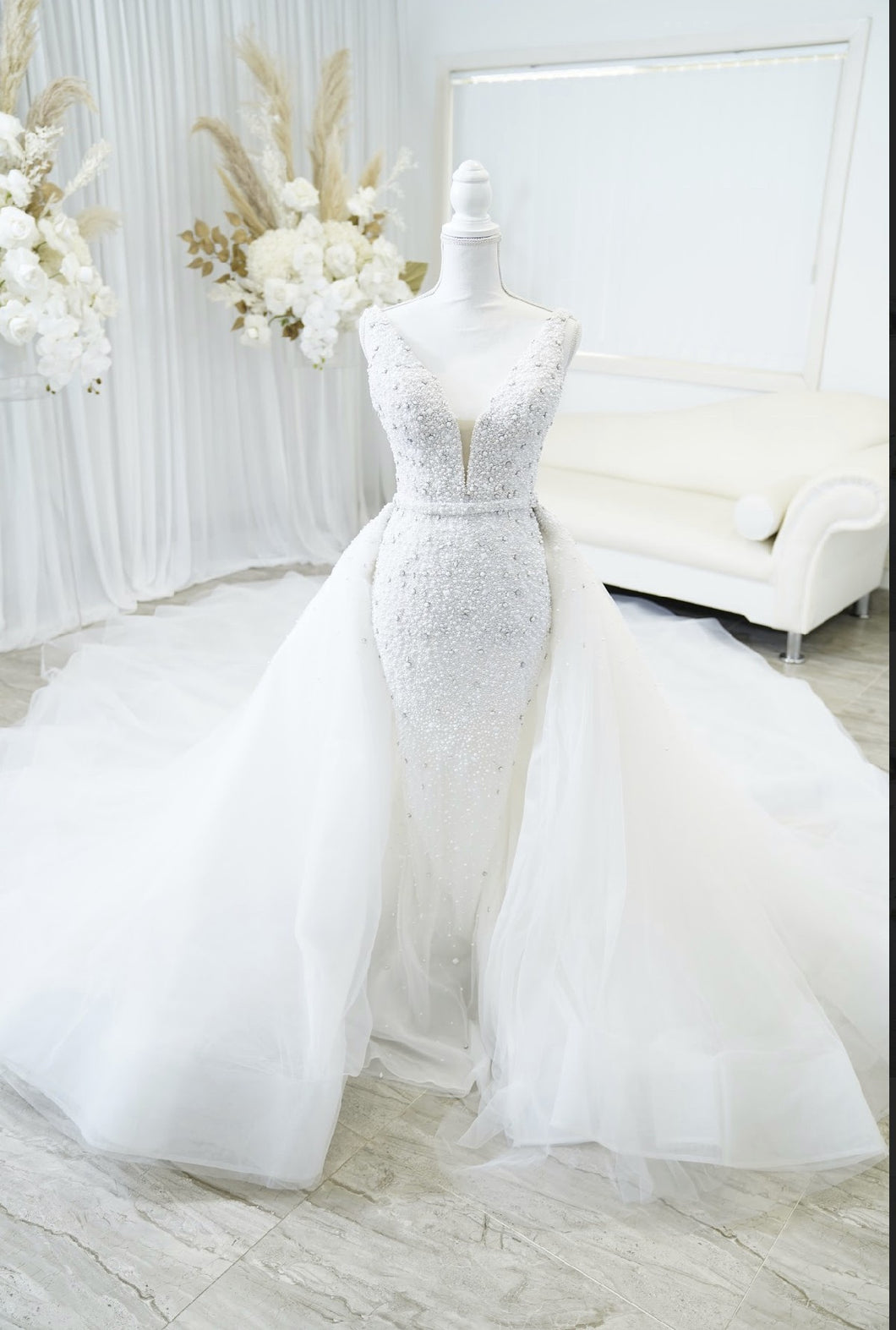 C2025-ALK63 - beaded deep v-neck fitted wedding gown