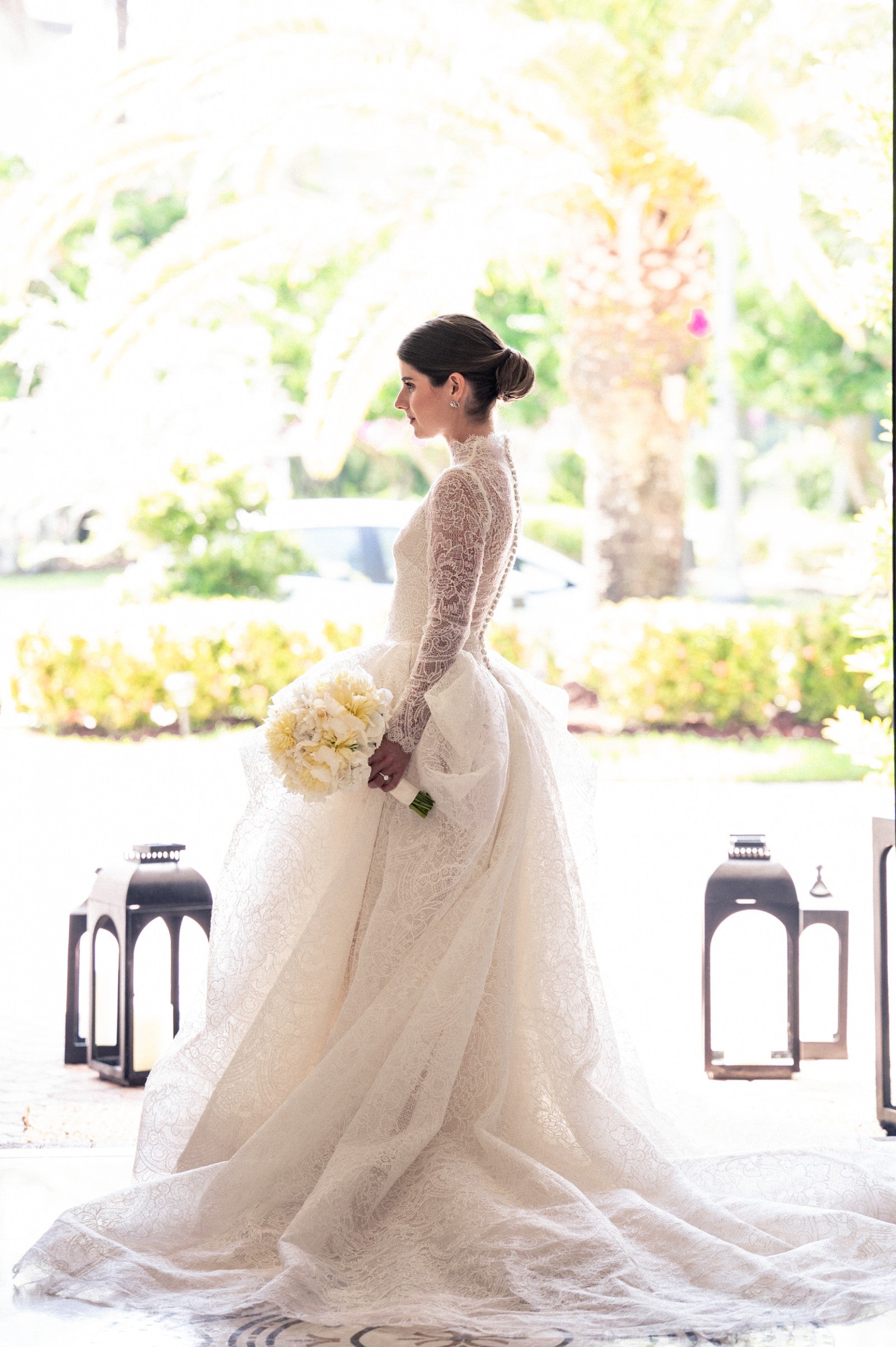 This traditional long sleeve wedding gown features delicate lace details inspired by Vera Wang’s timeless elegance. Its modest design offers graceful coverage while highlighting refined craftsmanship, perfect for brides seeking classic sophistication on their special day.