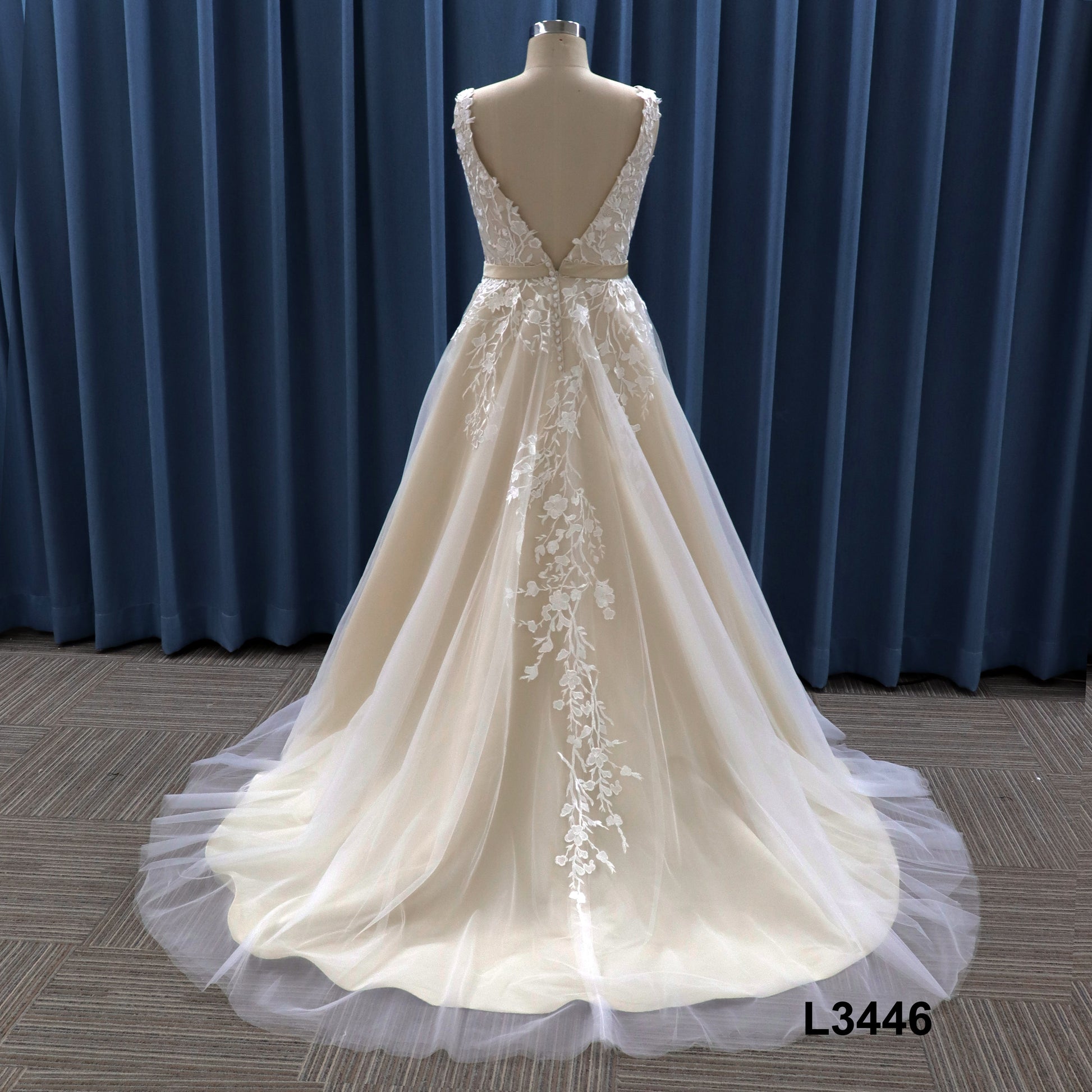 L3446 - Vestido de novia talla grande sin mangas con escote en pico