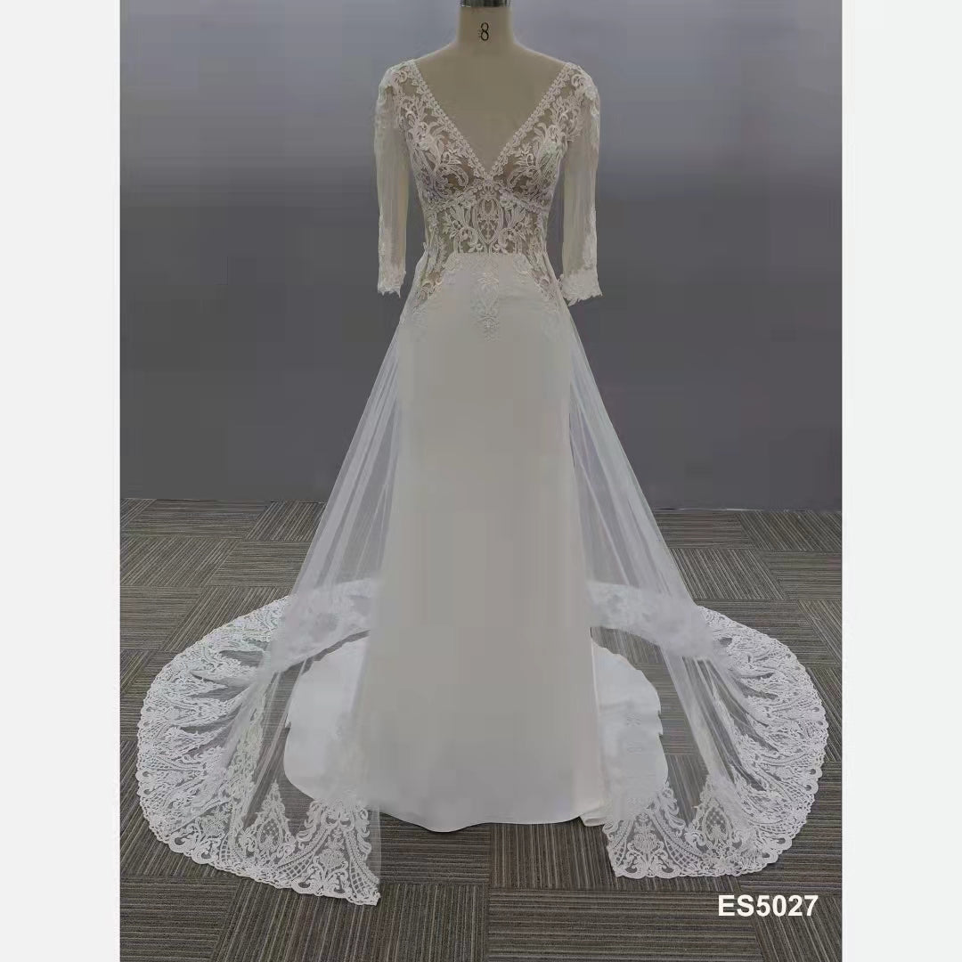 Este vestido de novia de manga larga con cuello en V se puede confeccionar en cualquier talla o con cualquier cambio.