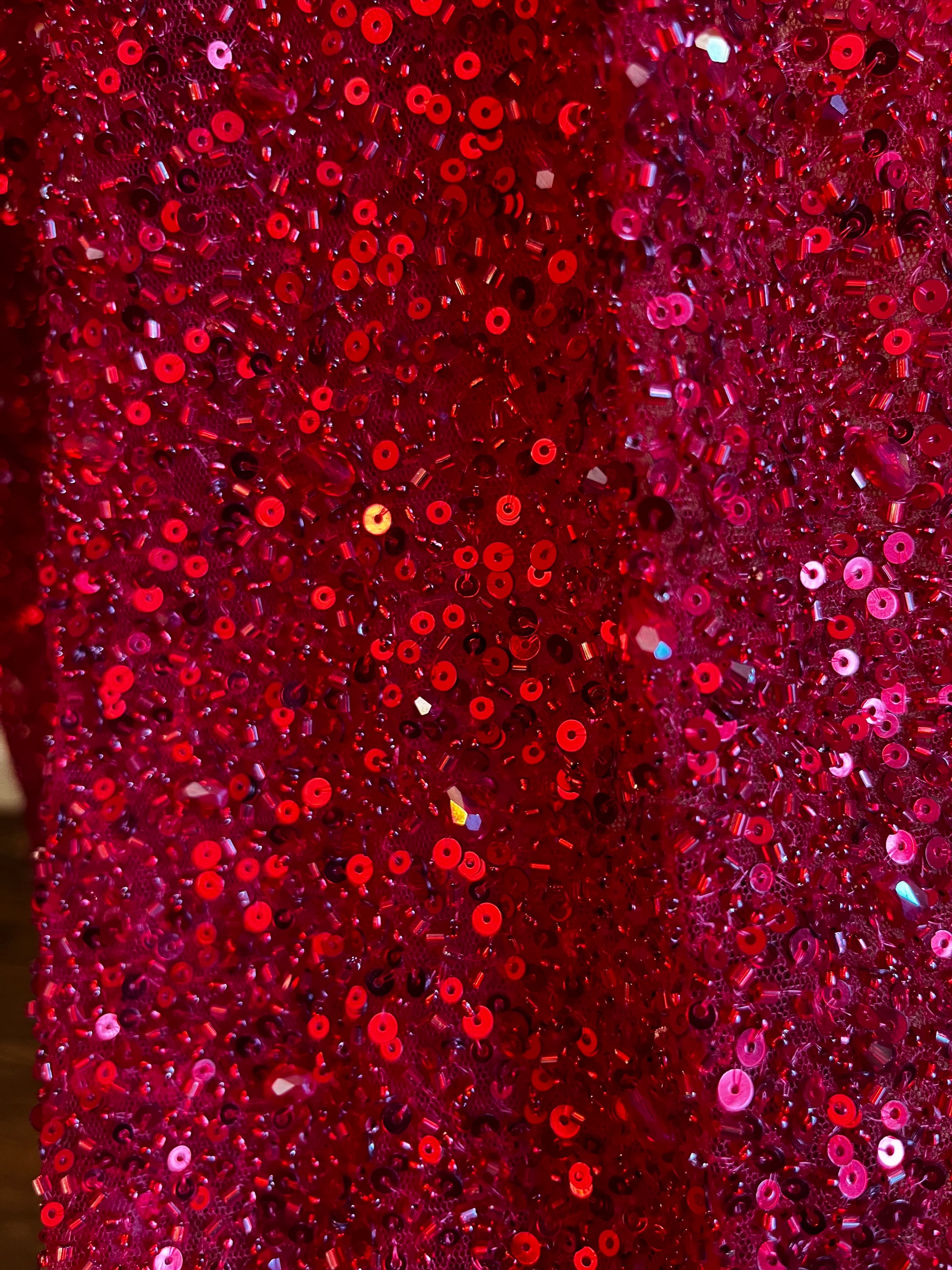 Estilo RM5193 - Réplica de un traje pantalón rojo de manga larga con cuentas de Reba McEntire