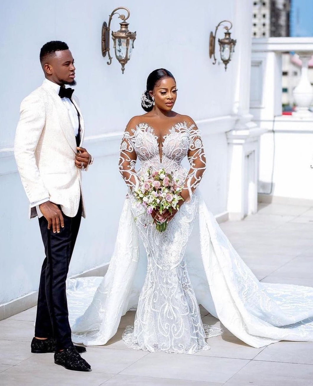 Améliorez votre look le jour de votre mariage avec notre robe C2024-LSB78. Cette superbe robe présente des perles complexes, une manche longue transparente et un décolleté illusion pour une touche de glamour. La traîne amovible ajoute une touche dramatique, vous offrant le mélange parfait d'élégance et de sophistication lors de votre journée spéciale.