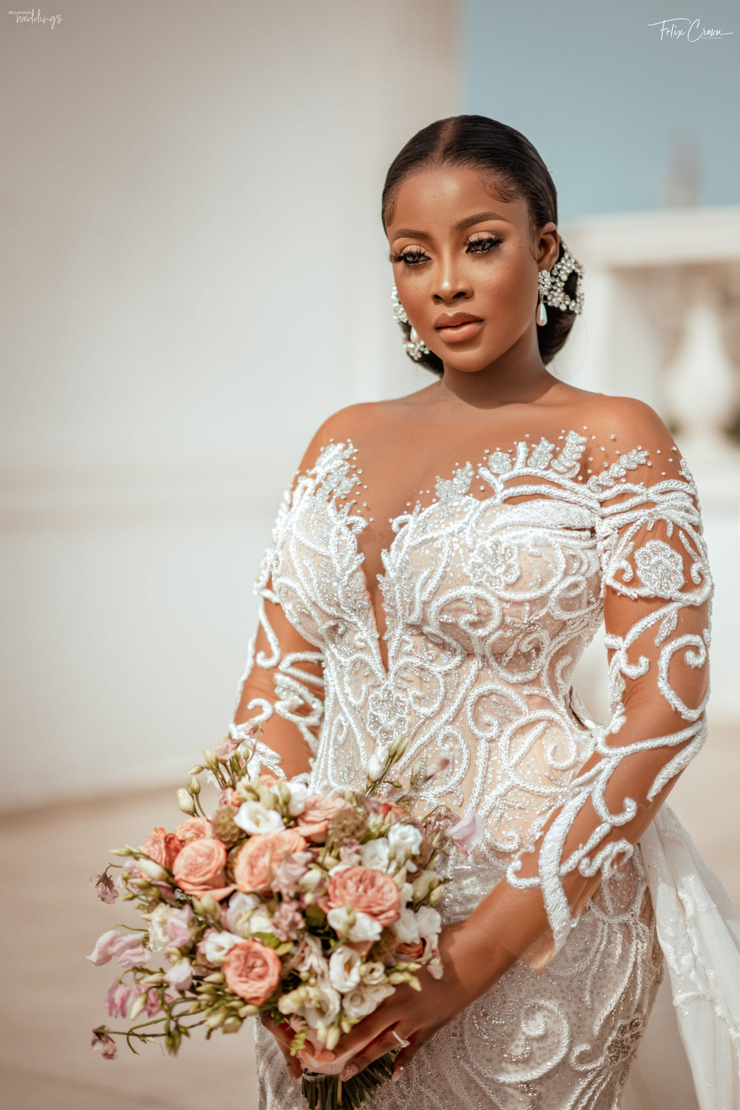 Obtenez cette robe de mariée transparente à manches longues et perles avec un décolleté illusion et une traîne amovible créée comme sur la photo ou avec TOUTES les modifications de #design dont vous avez besoin.