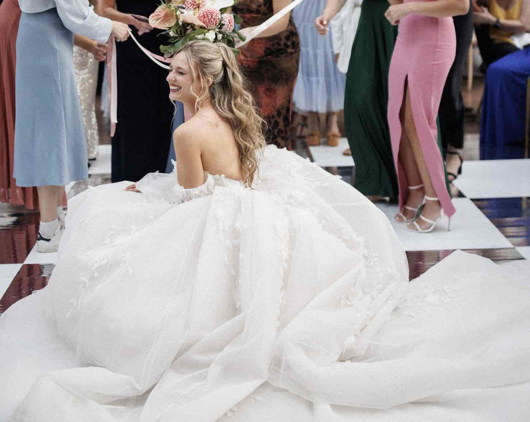 Présentation de la C2024-LSg27, une luxueuse robe de bal de mariée à manches longues avec un décolleté élégant et sophistiqué à épaules dénudées. Confectionnée avec la plus grande attention aux détails, cette robe vous fera vous sentir comme une vraie reine lors de votre journée spéciale. Complétez votre look de mariage de conte de fées avec ce design exclusif.