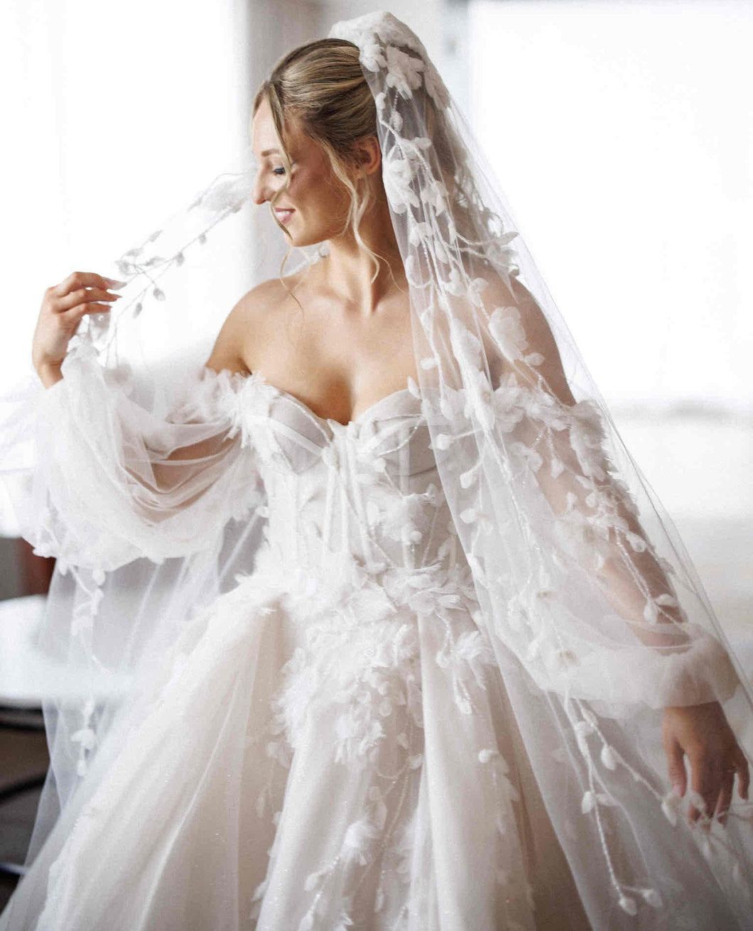 Procurez-vous cette robe de bal de mariée Bishop à manches longues avec décolleté à épaules dénudées. fait avec TOUTES les modifications de #conception.