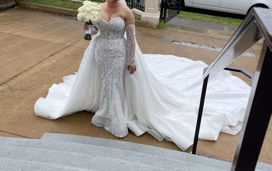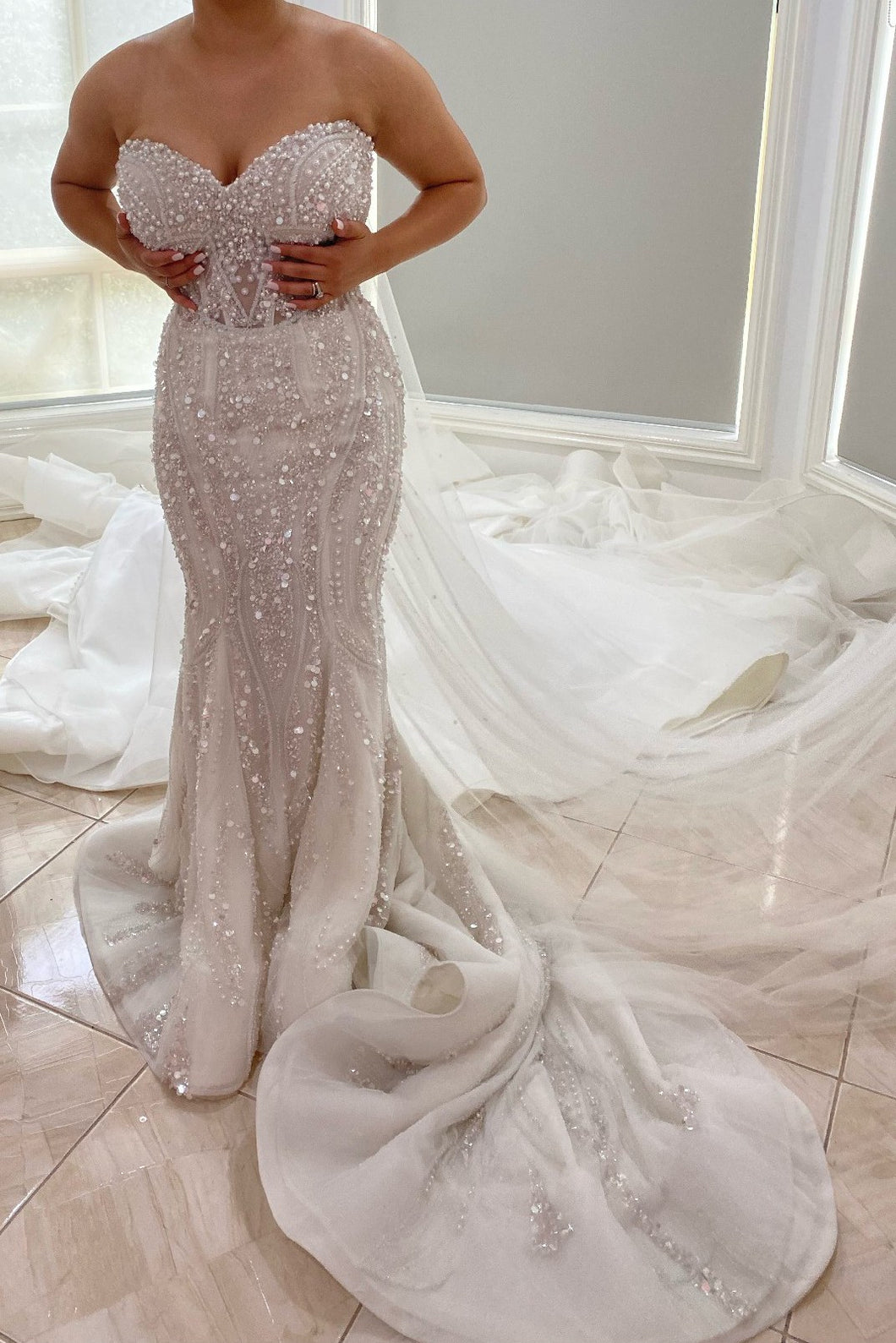 Procurez-vous cette robe de mariée sans bretelles en perles avec des manches transparentes détachables avec TOUS les changements de #design.