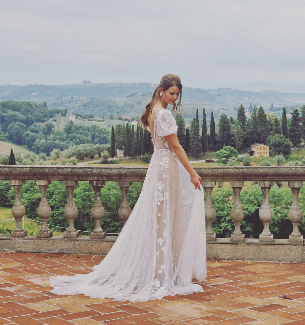 Offrez-vous une élégance intemporelle avec notre robe de mariée C2024-SSU5. Les manches courtes bouffantes ajoutent une touche de fantaisie, tandis que la silhouette fourreau accentue votre silhouette. La traîne amovible ajoute de la polyvalence pour un look personnalisable. Dites « oui » avec style et grâce avec cette robe #luxueuse.