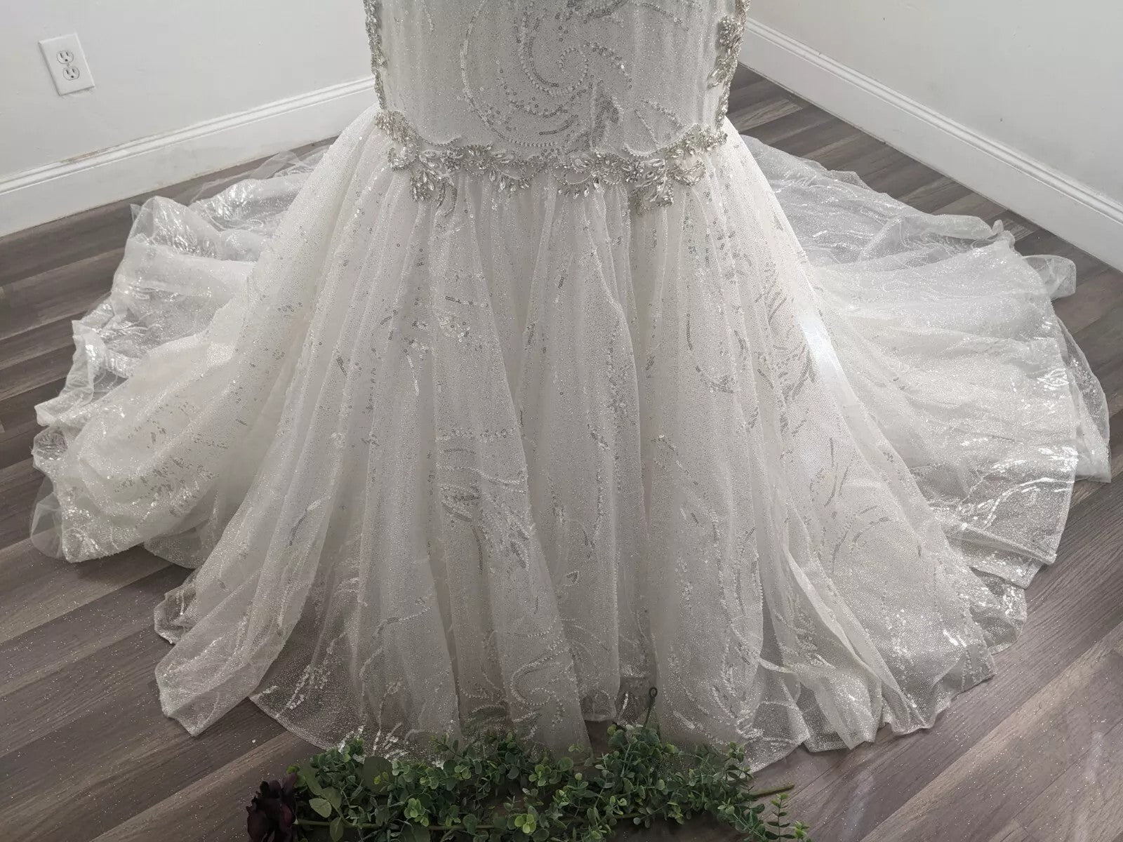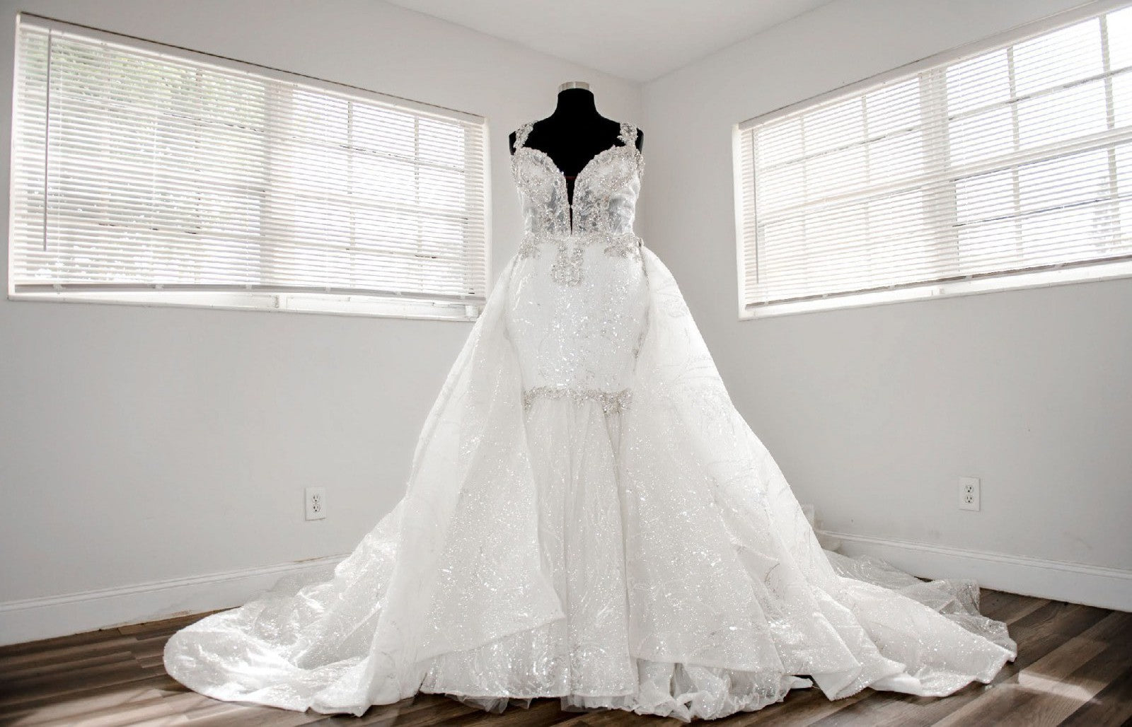Get this crystal bling beaded plus size wedding gown with any changes.
