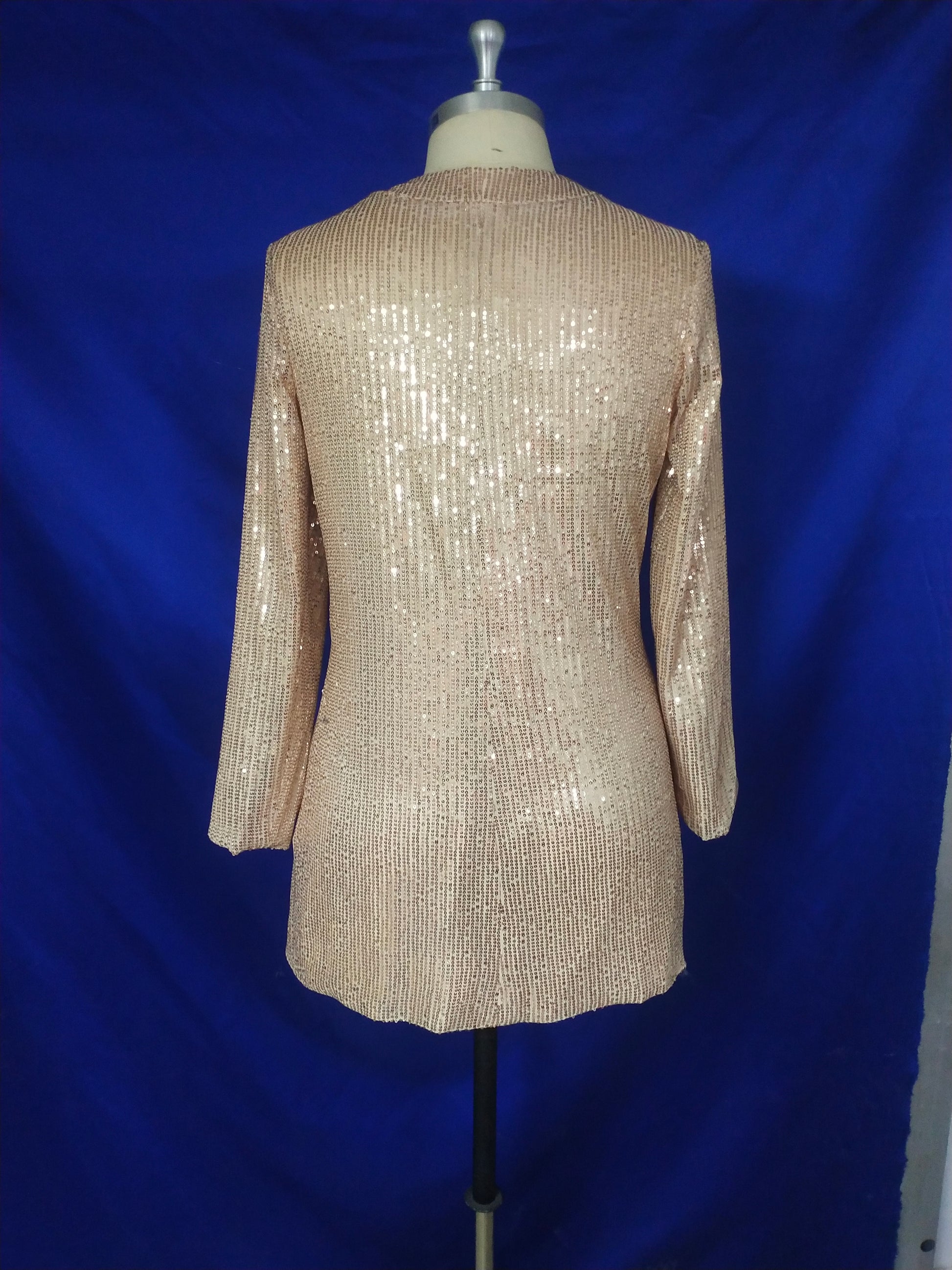 Tailleur pantalon à manches longues et perles à sequins dorés